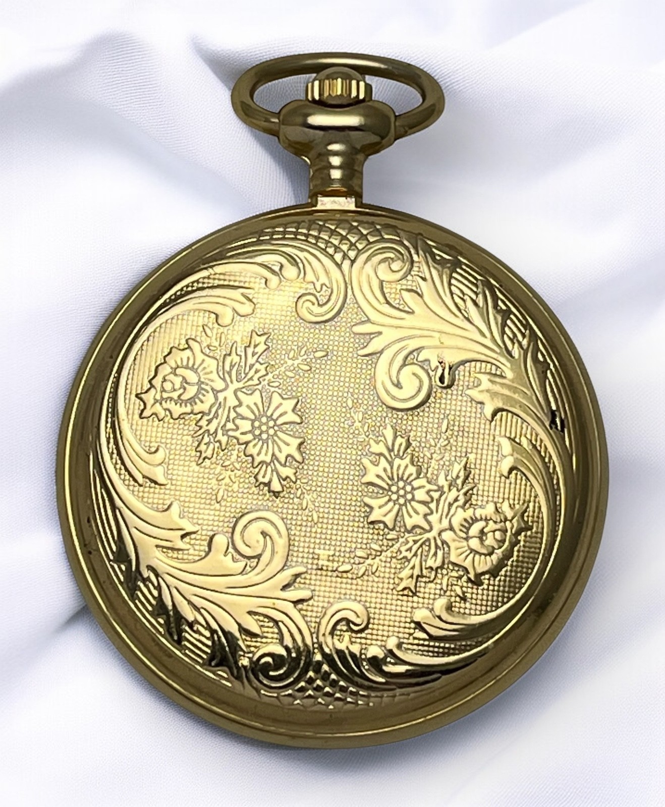 LTD Quartz Pocket Watch Gold Tone Japan Movement Arabic Numeral Dial Mens