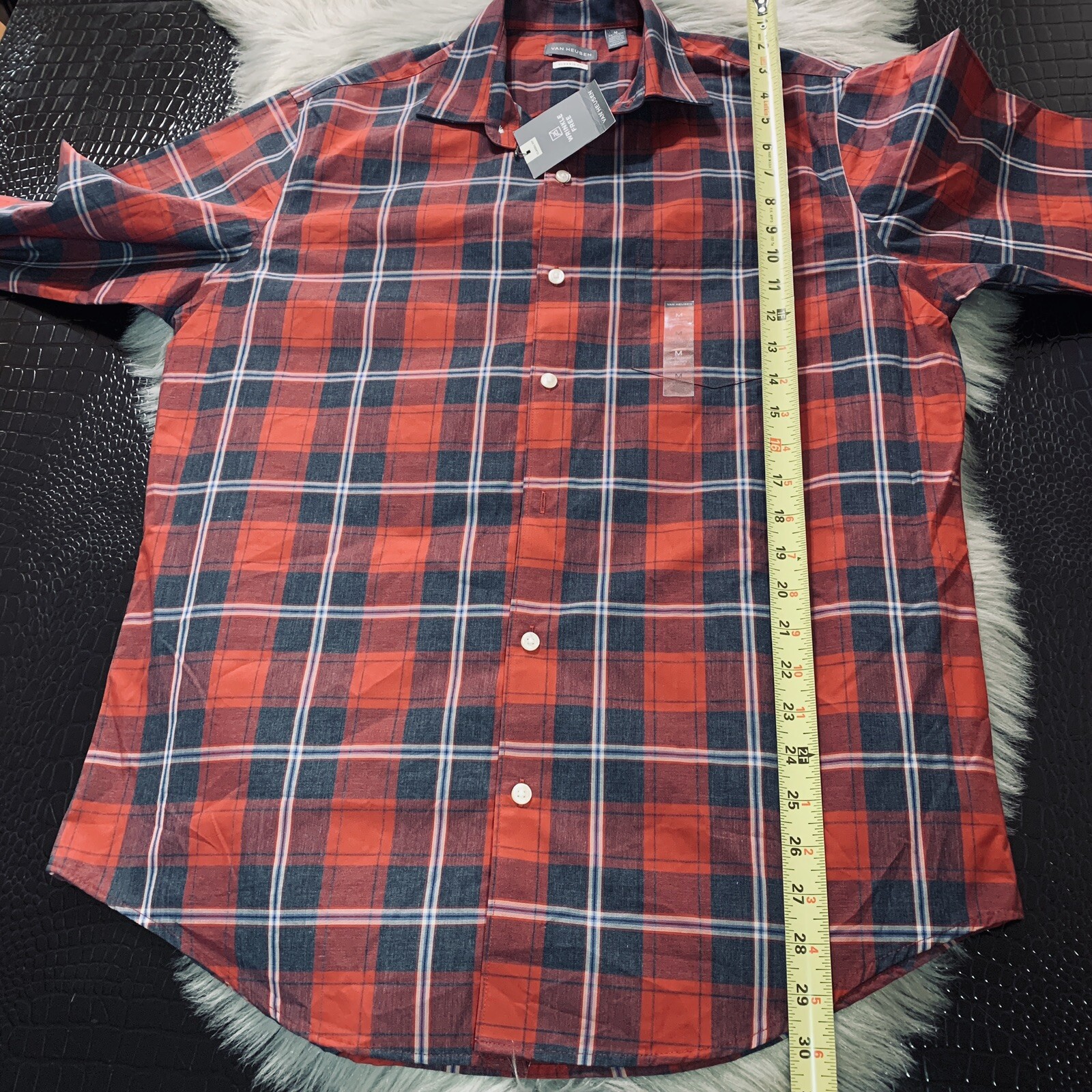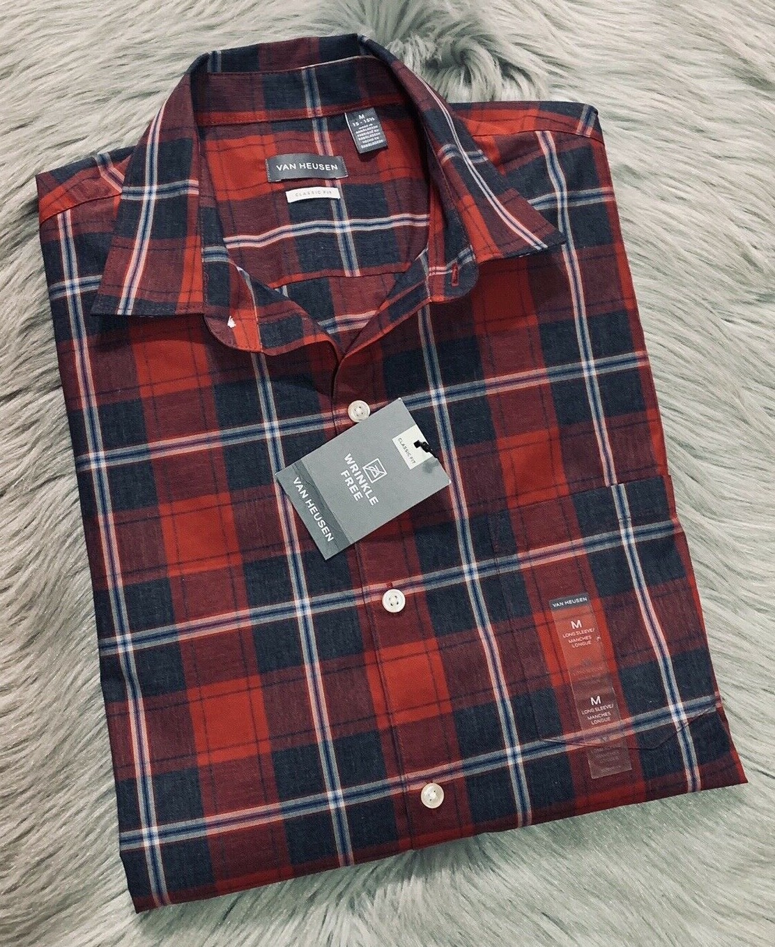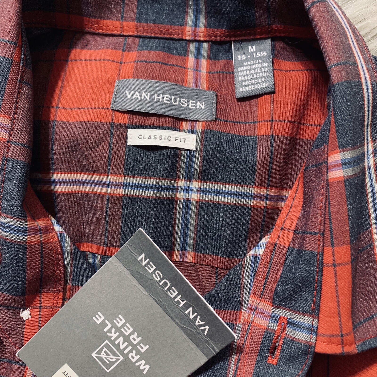NWT Van Heusen Classic Fit WRINKLE FREE Button Front Plaid Shirt 15- 15 1/2 Med