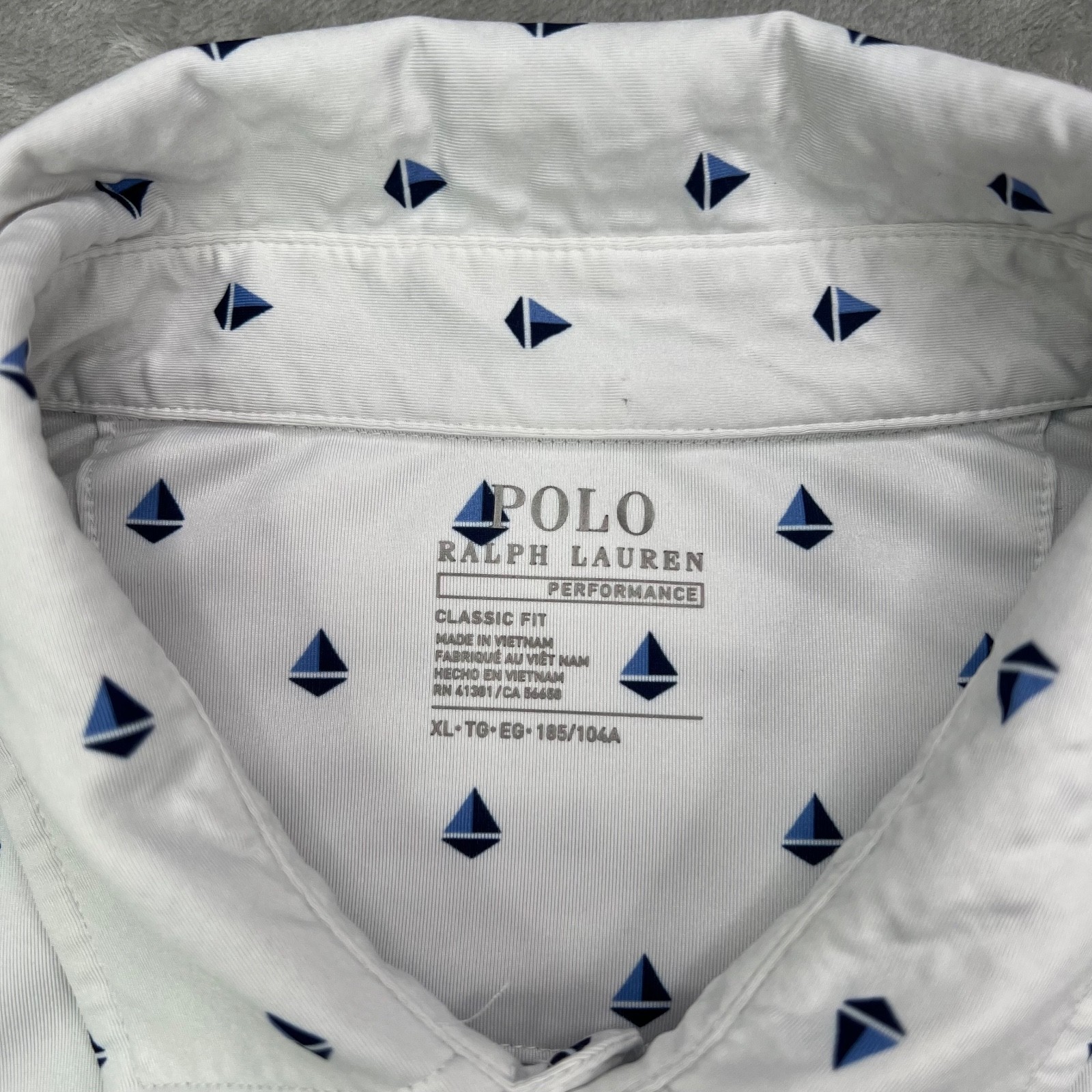Polo Ralph Lauren Performance Polo Mens XL White Geometric Golf Stretch Preppy