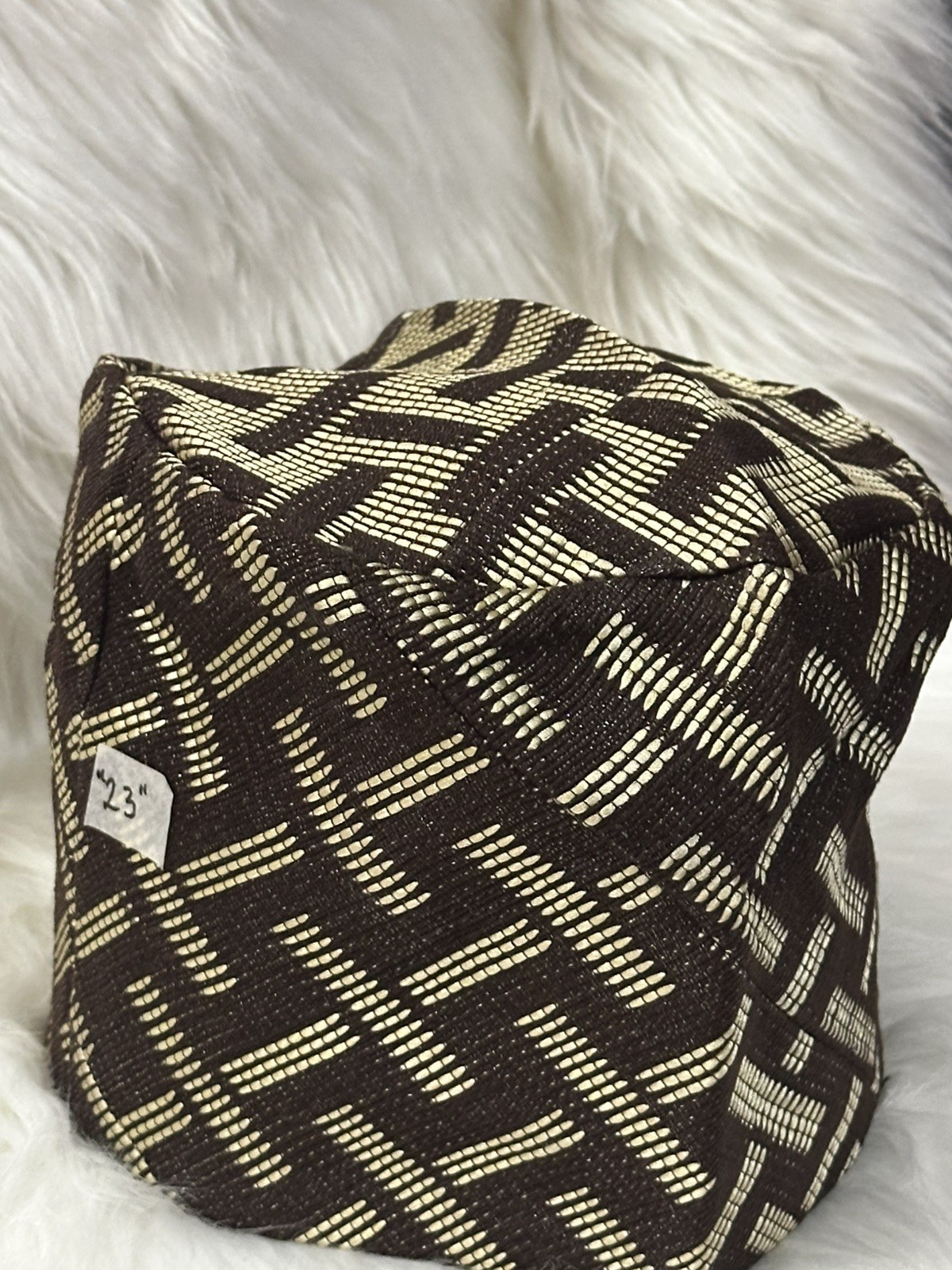 как выглядит Brown and Cream African/Nigerian ASO Oke full weave Men s Cap for Parties. фото
