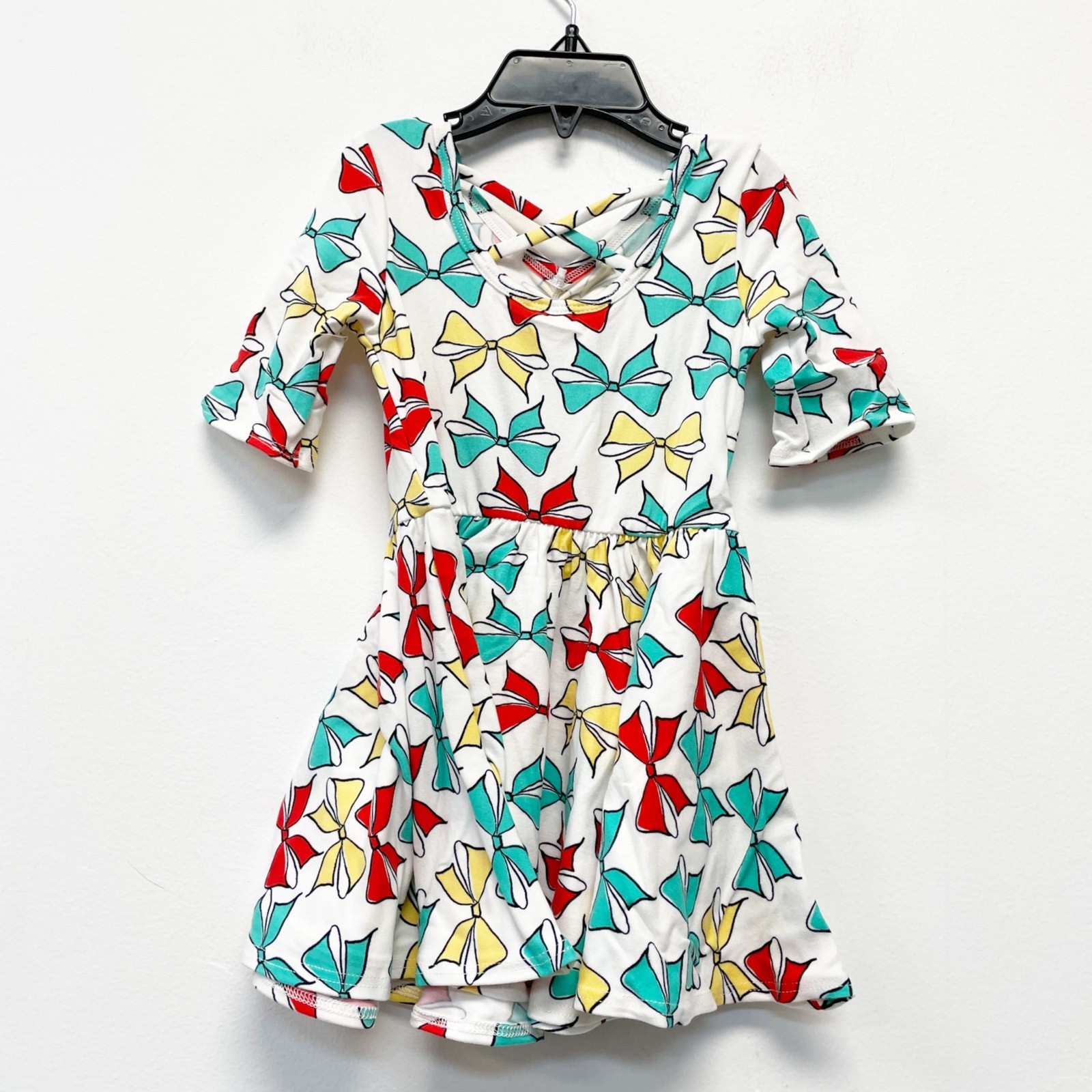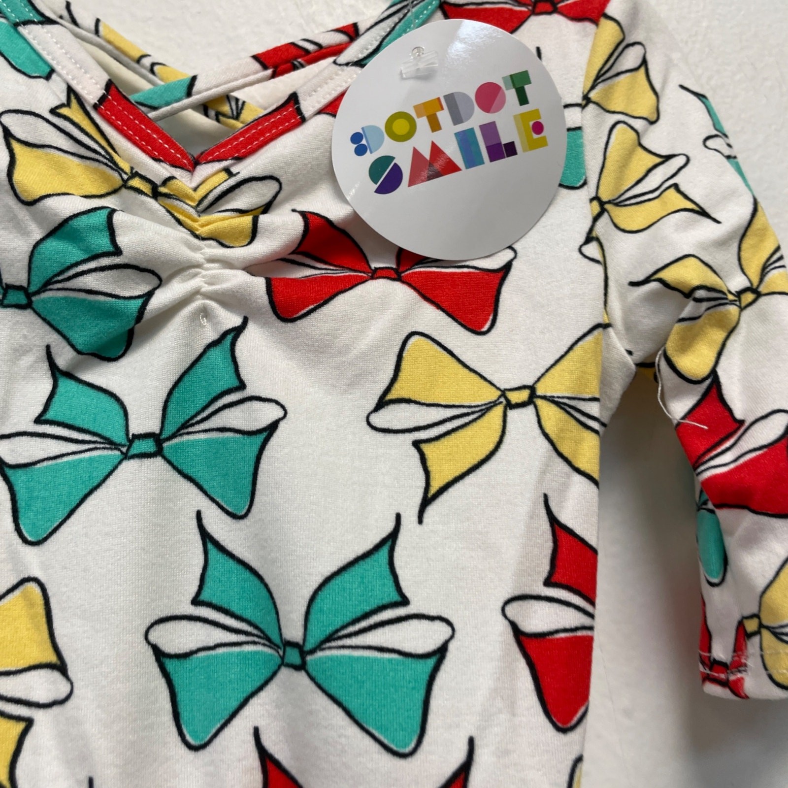 как выглядит Dot Dot Smile Girls White Bow Print Ballerina Short Sleeve Dress Size 12-24m фото