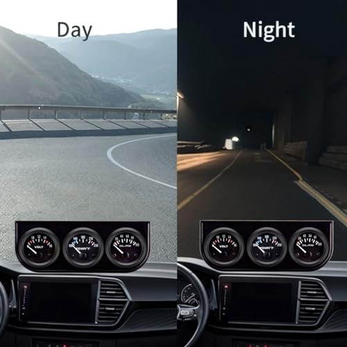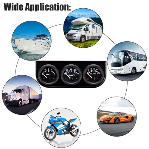 52mm 3-in-1 Car Gauge Kit - Voltage Meter, Water Temperature, and Oil Black