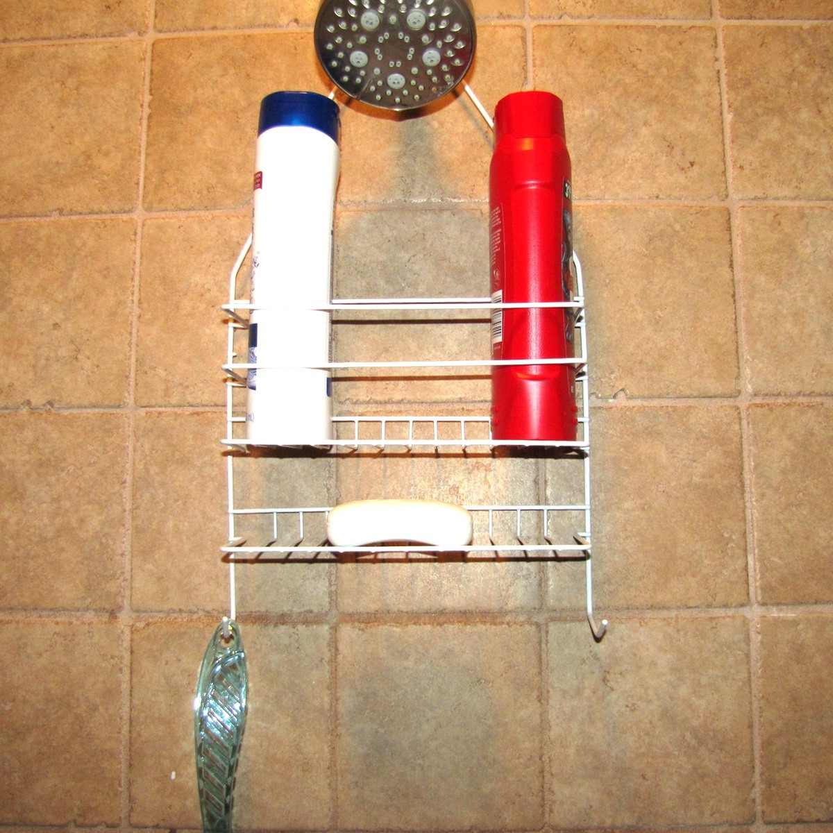 Hanging White Metal Shower Head Caddy Bathroom Storage Bath Shelf Organizer Rack