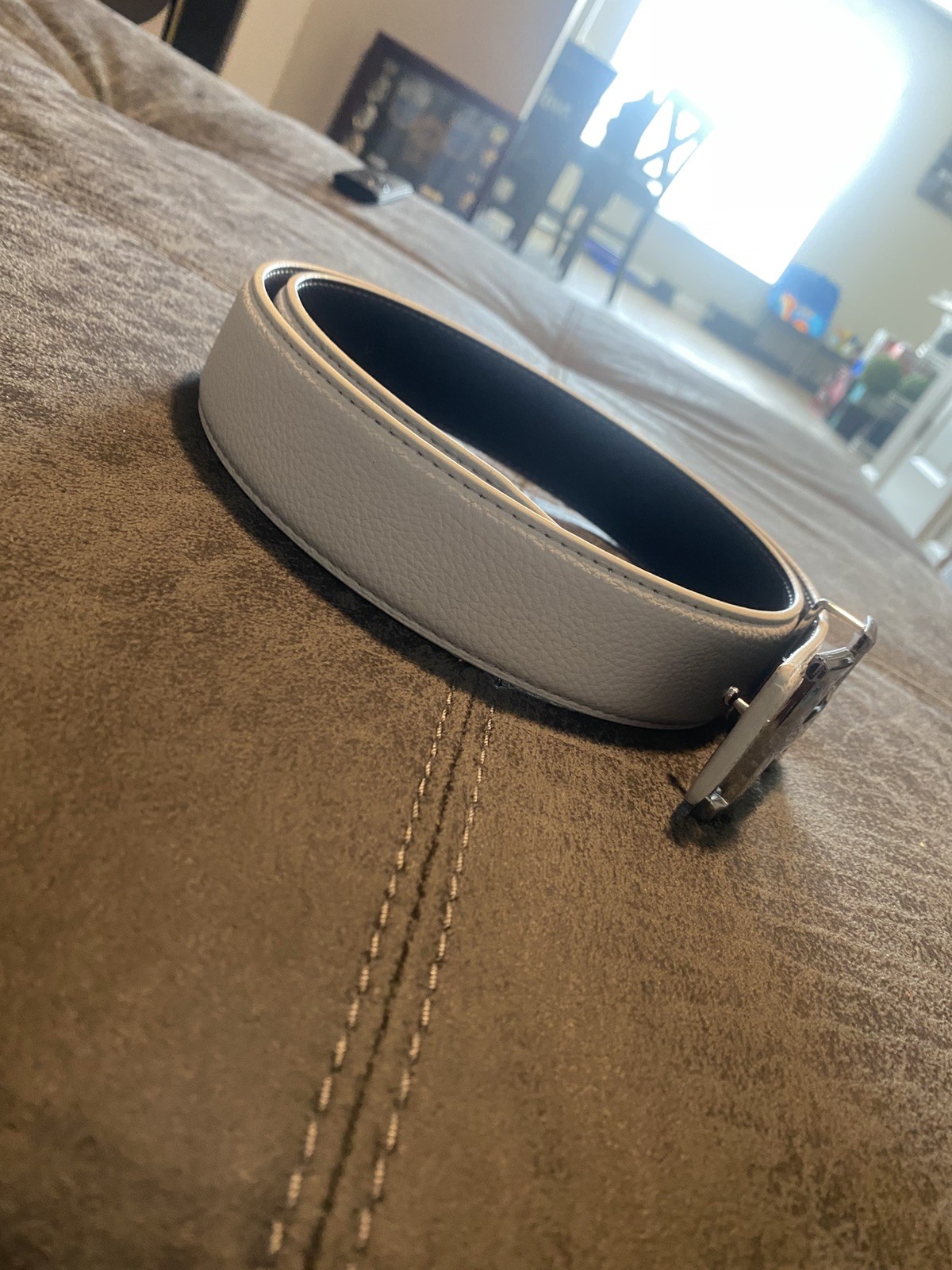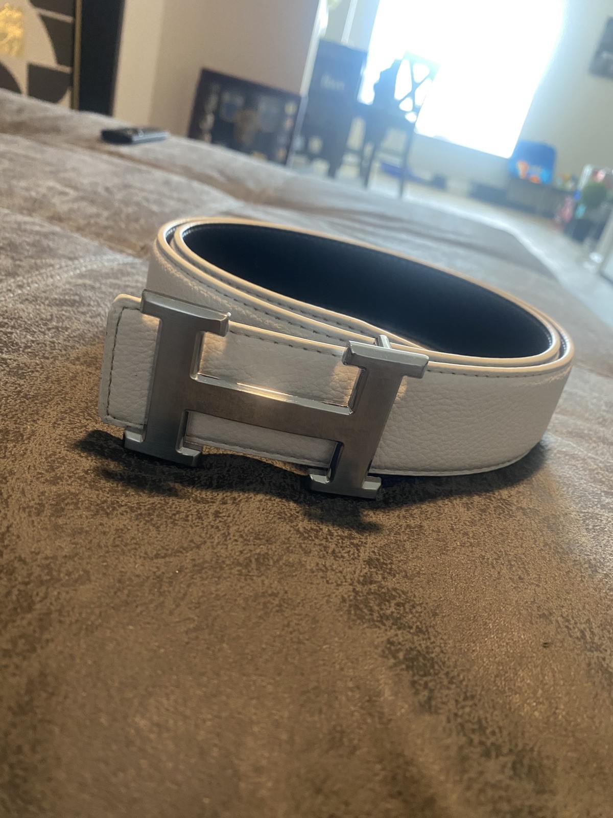 как выглядит Hermes white and Black Reversible Belt Silver Buckle Mens Waist Size 32-38 фото
