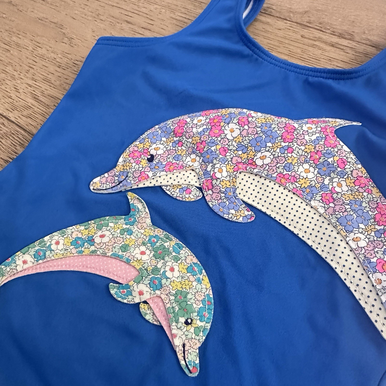 Mini Boden Swimsuit Girls Kids 2-3 Blue Dolphin Fun Applique One-Piece Swim