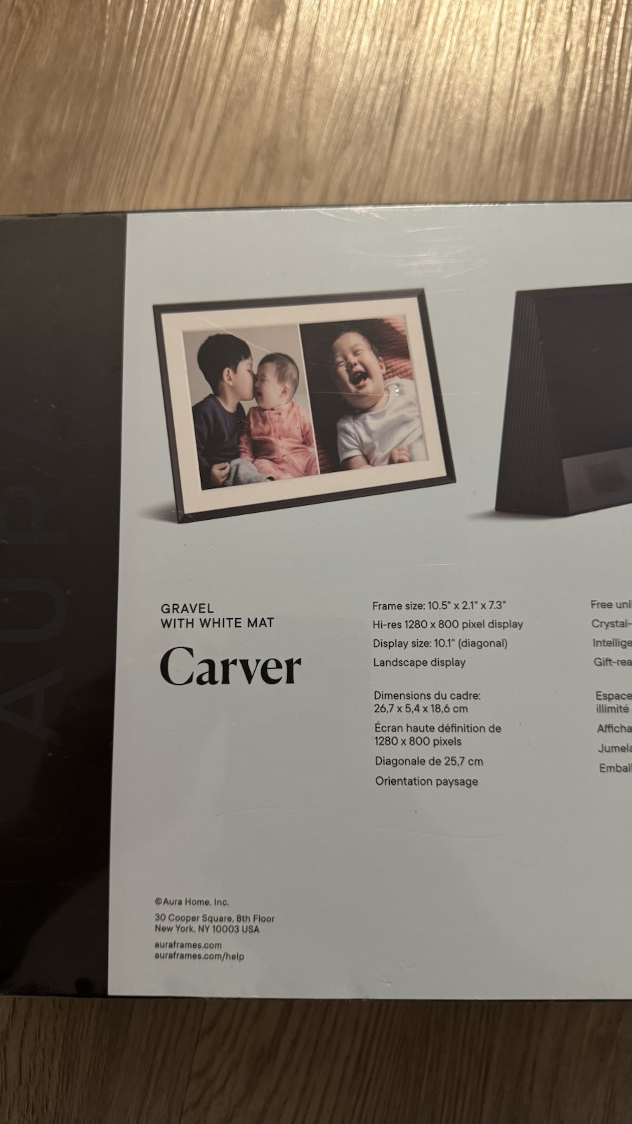 как выглядит AURA CARVER DIGITAL PHOTO FRAME 10.5" X 2.1" X 7.3" GRAVEL WITH WHITE MAT фото