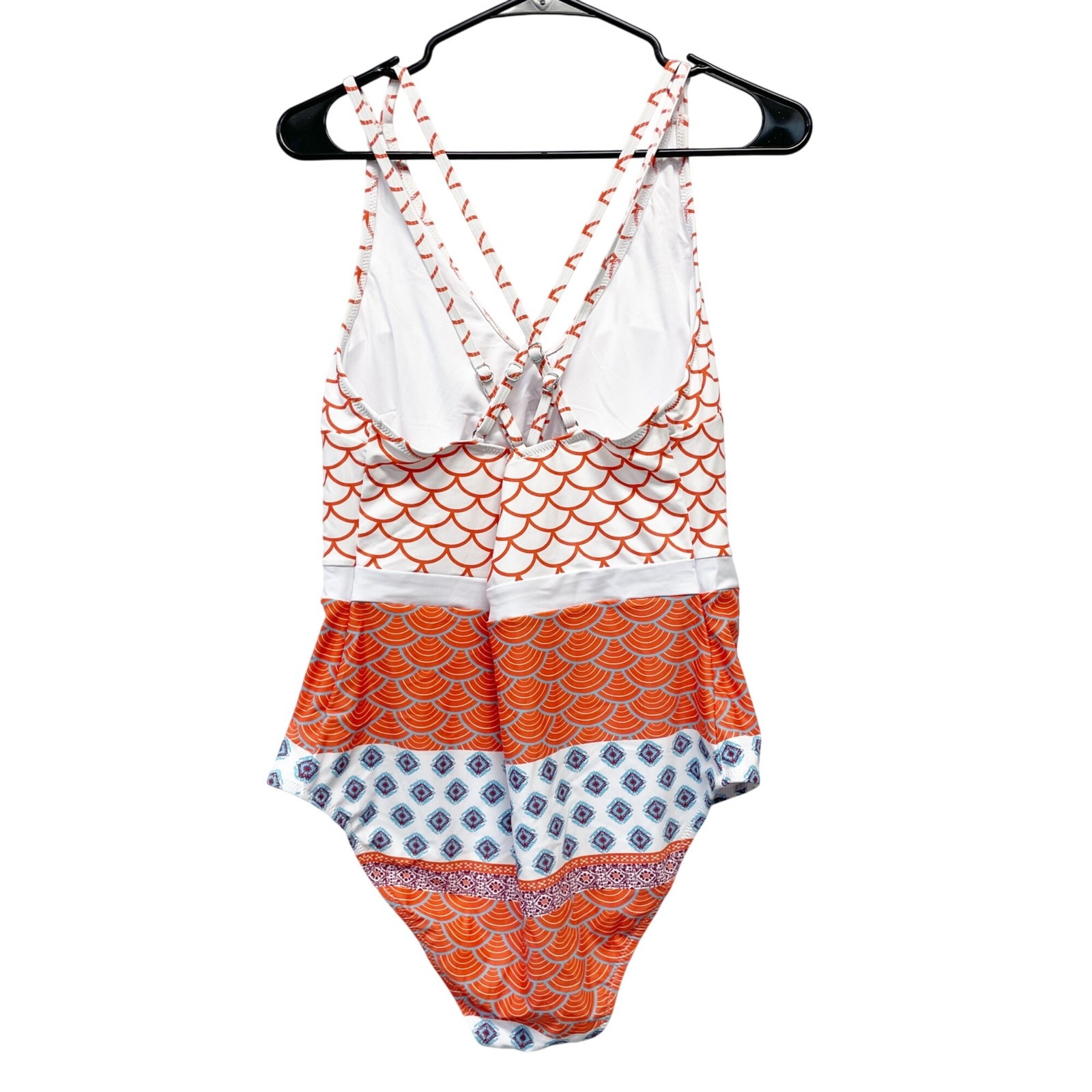 как выглядит Cupshe Womens Geo Print Scoop Neck One Piece Swimsuit Orange Blue Size XL фото