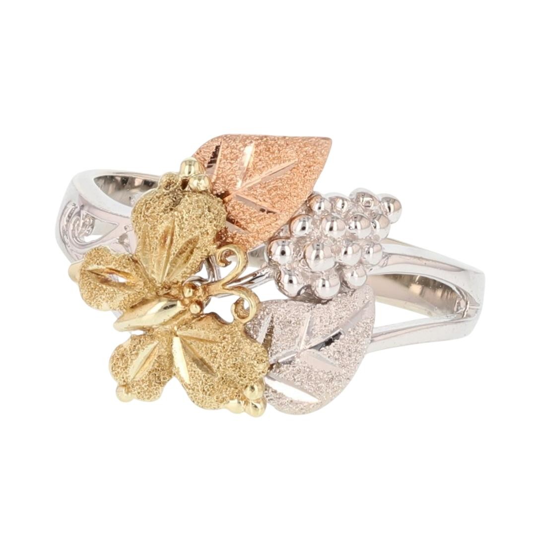 15.1mm Textured Butterfly Leaves Ring 14k Multi-Tone Gold 4.31 Grams Size 7.75