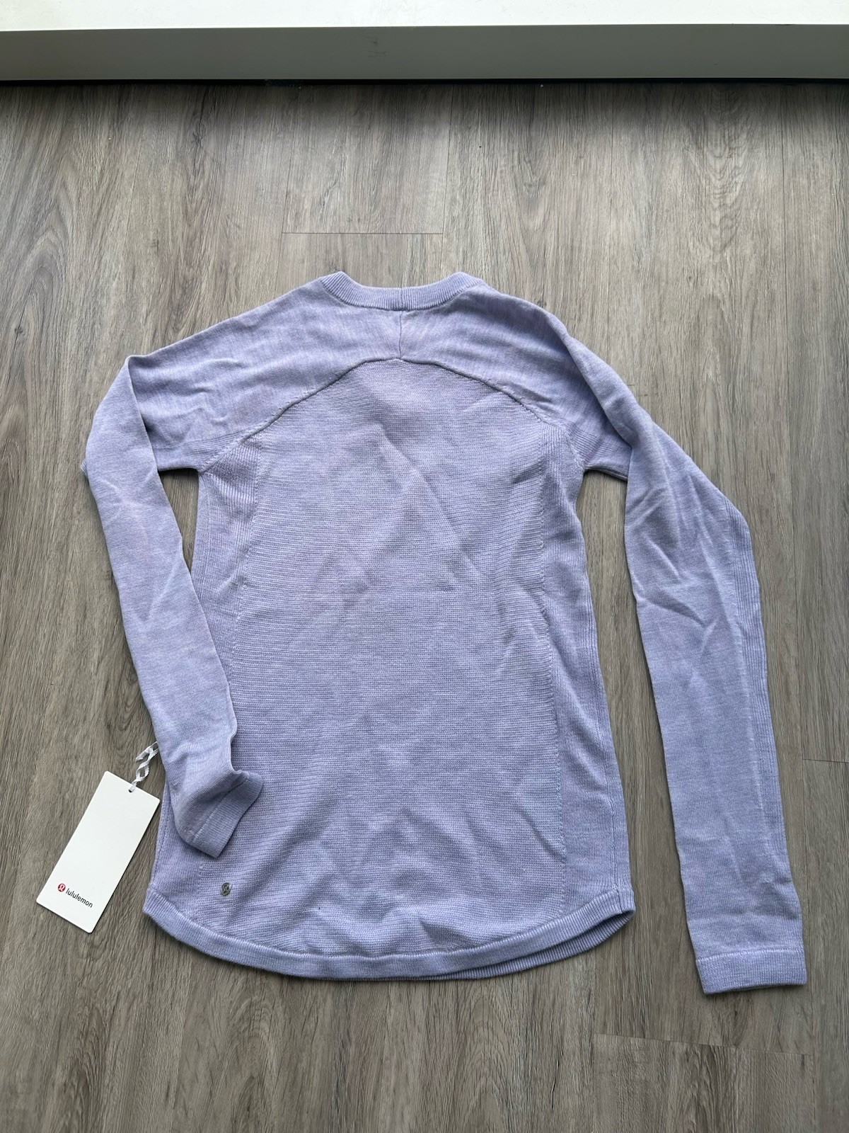 как выглядит Lululemon Sit In Lotus Sweater Heathered Lilac Merino Wool Size 6 Thumbholes фото