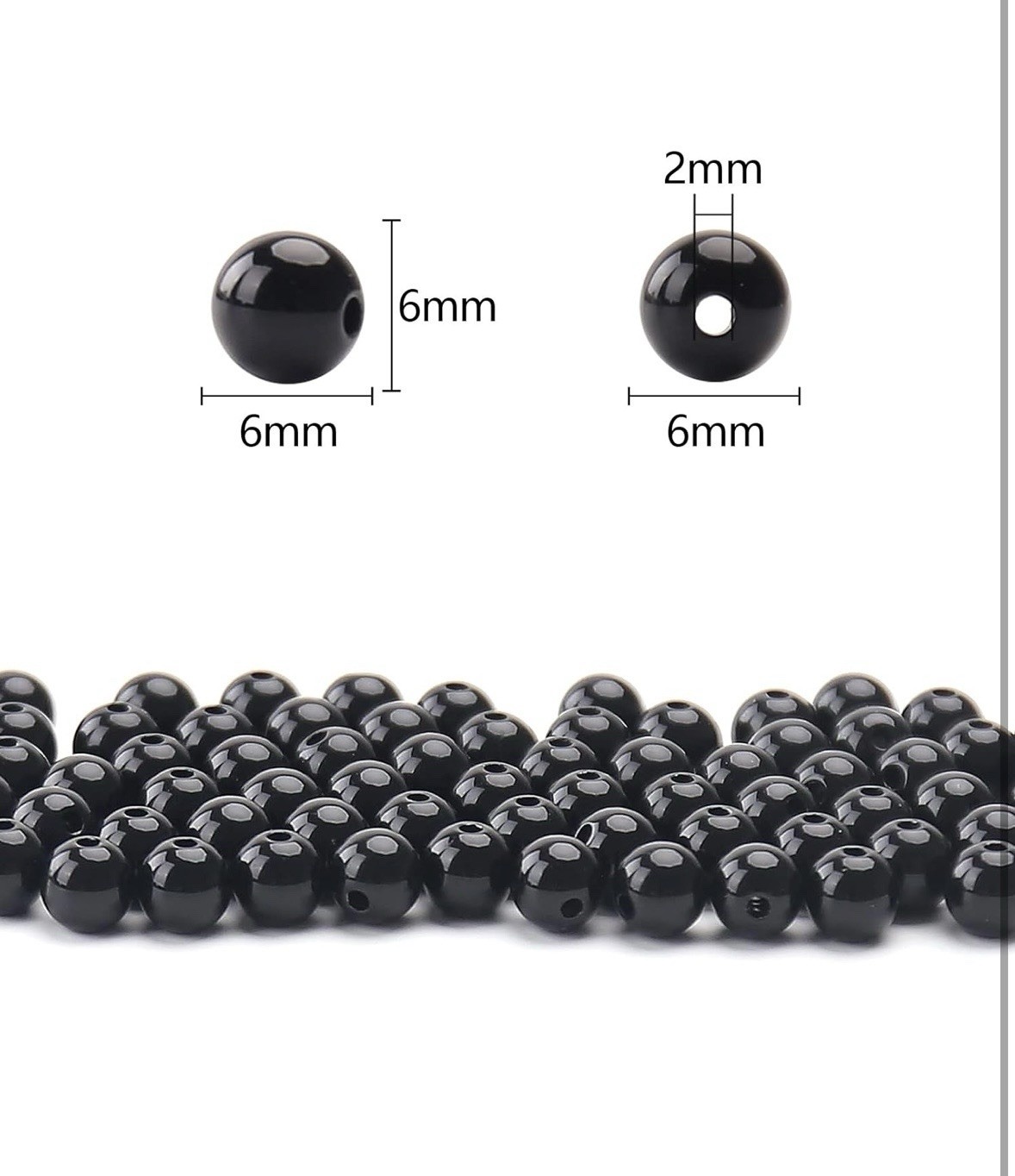 как выглядит 1000 Pcs Round Black Acrylic Beads 6mm Diameter with 2mm Hole For Crafts фото
