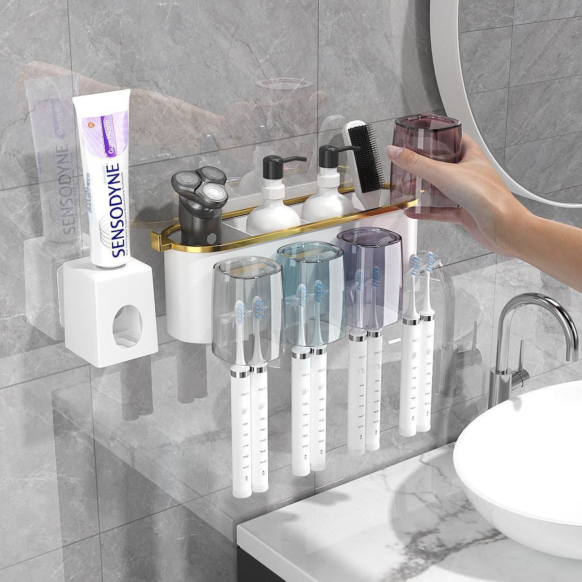 Multifunctional Wall Mount Toothbrush Holder Rack Organizer Automatic Toothpaste