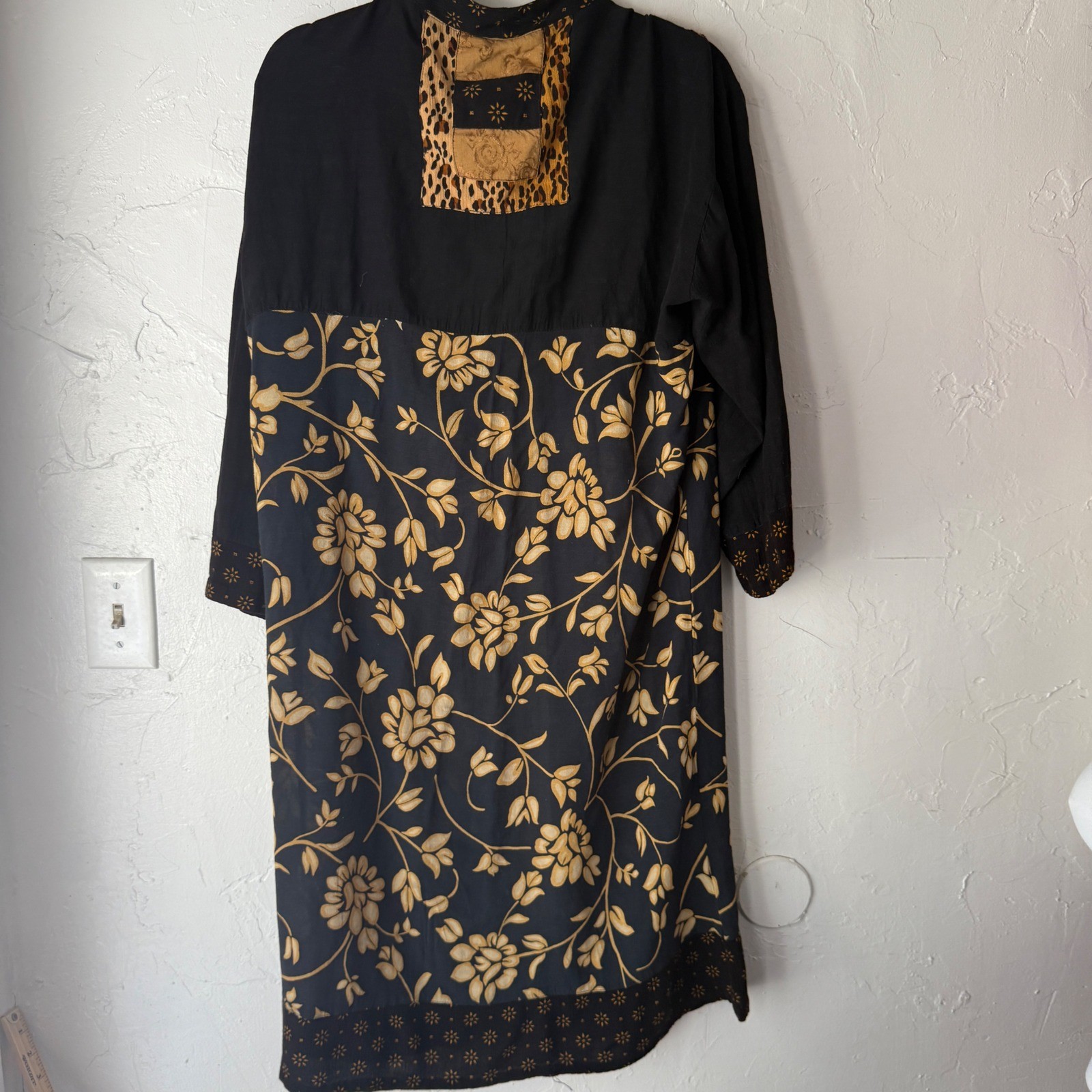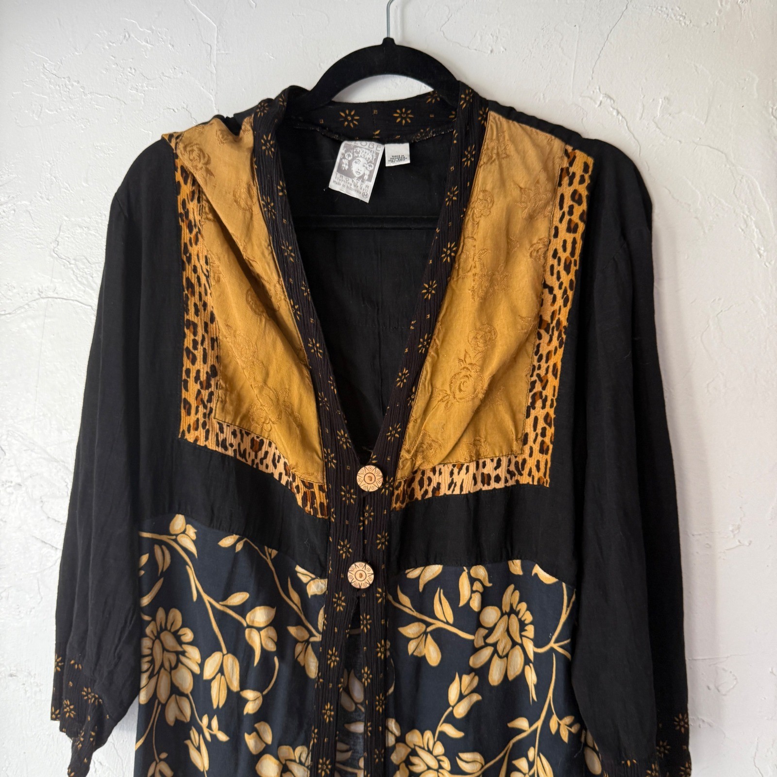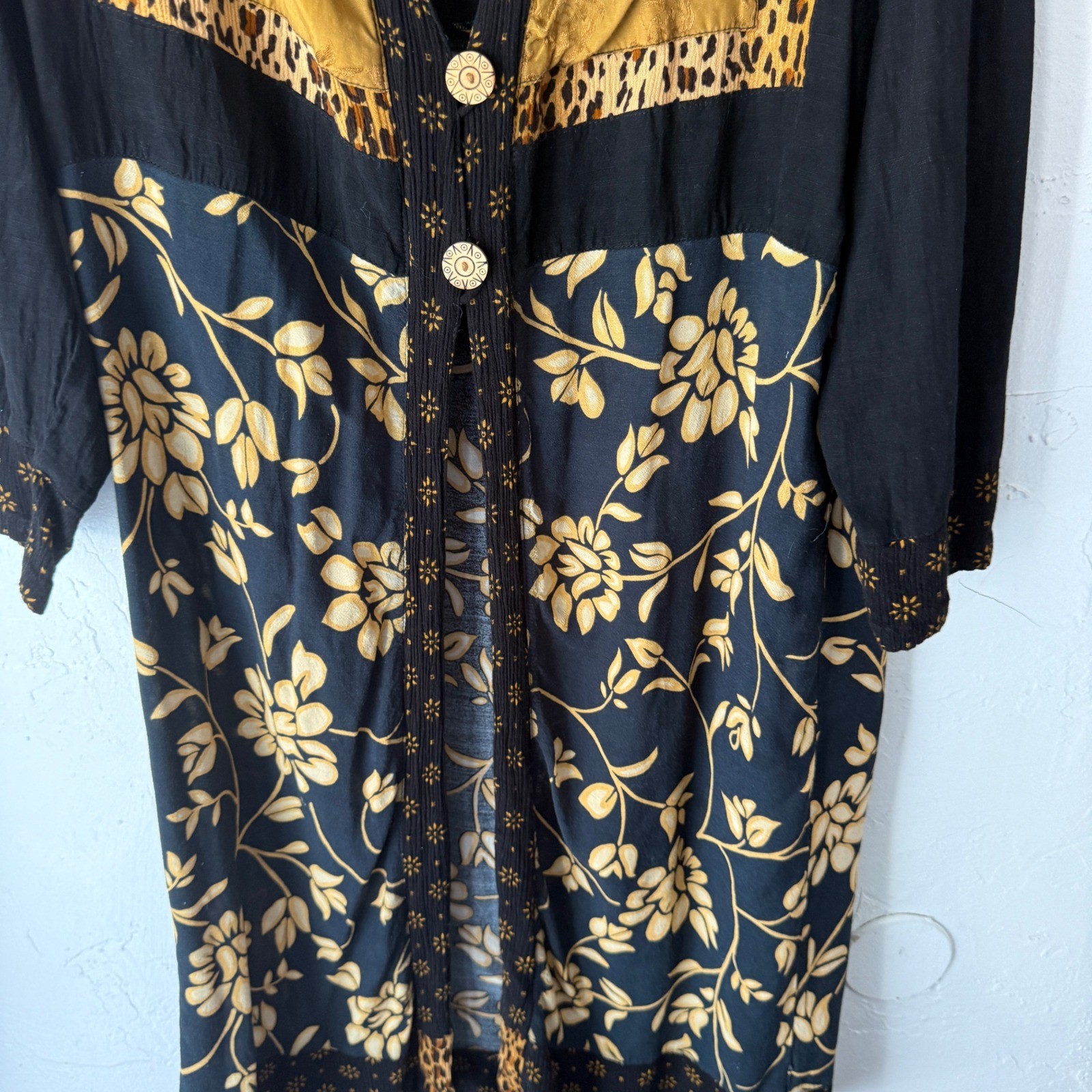 как выглядит Globe TrotterVintage Bali Womens Black Floral Kimono Duster M Boho Hippie фото