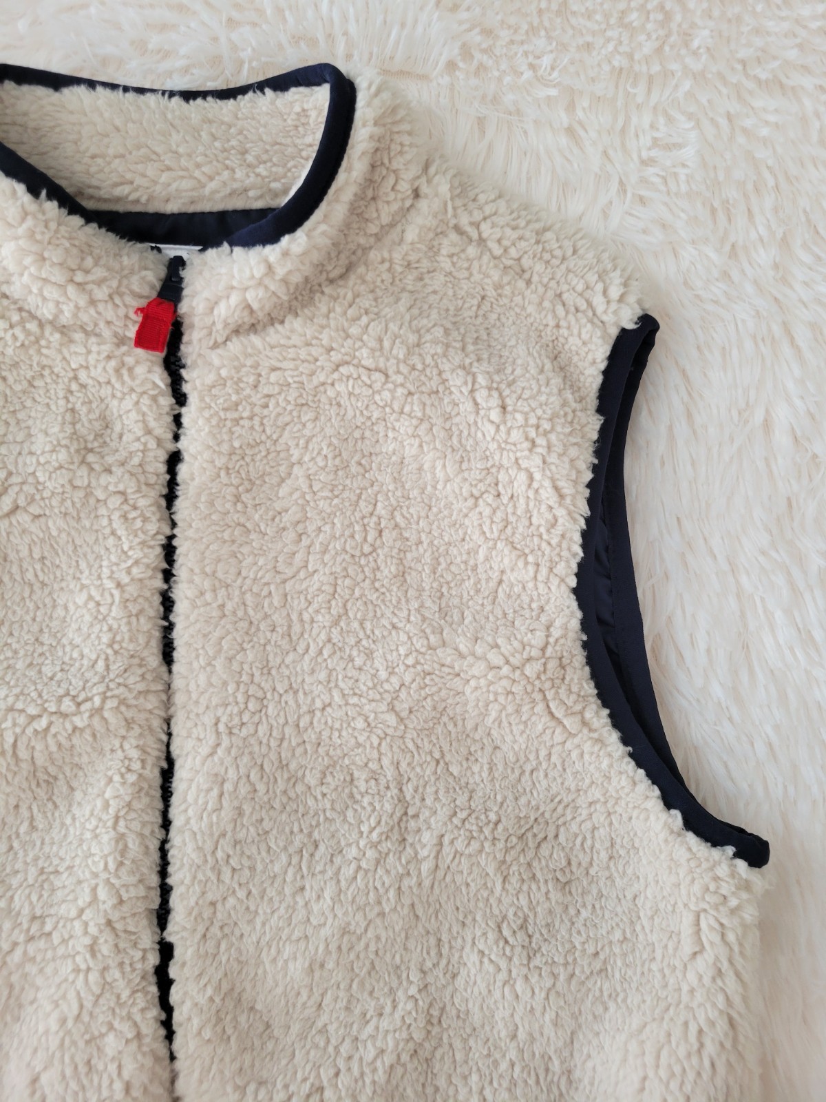 как выглядит Gymboree Beige Sherpa Full Zip Navy Interior Vest Boys Size 10/12 фото