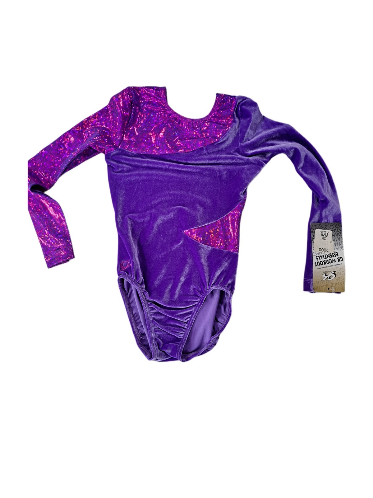 GK Elite VTG Purple Metallic Geometric LS Velvet Logo Leotard Size AS Adult S