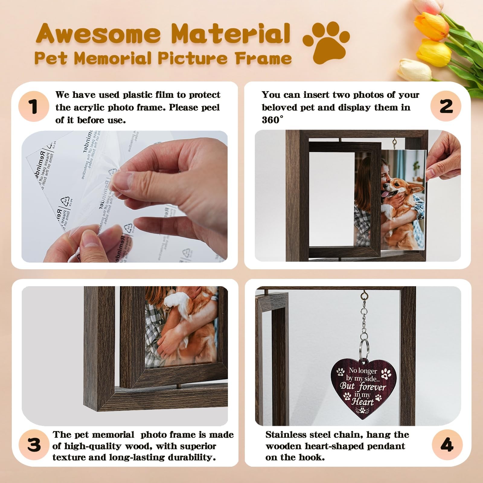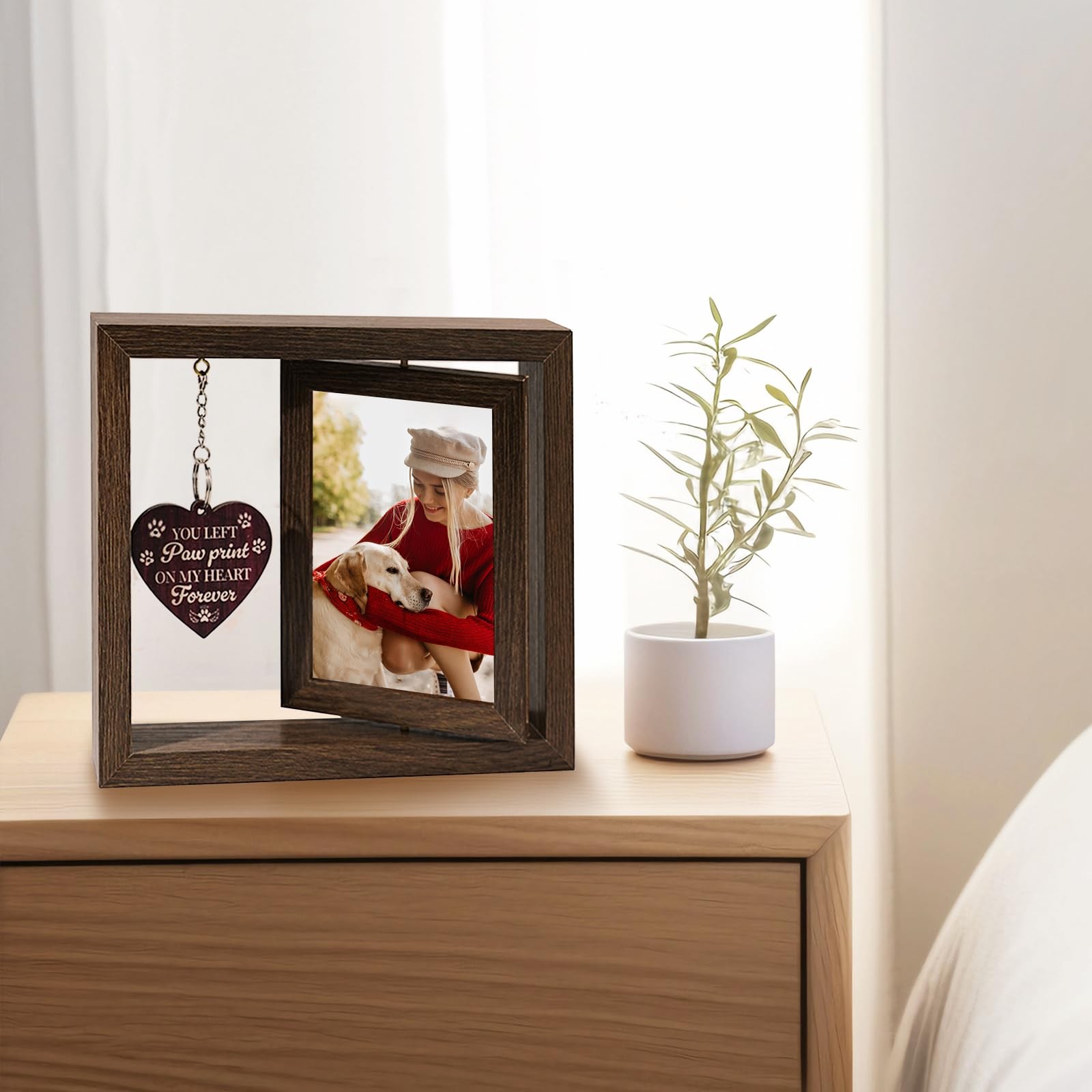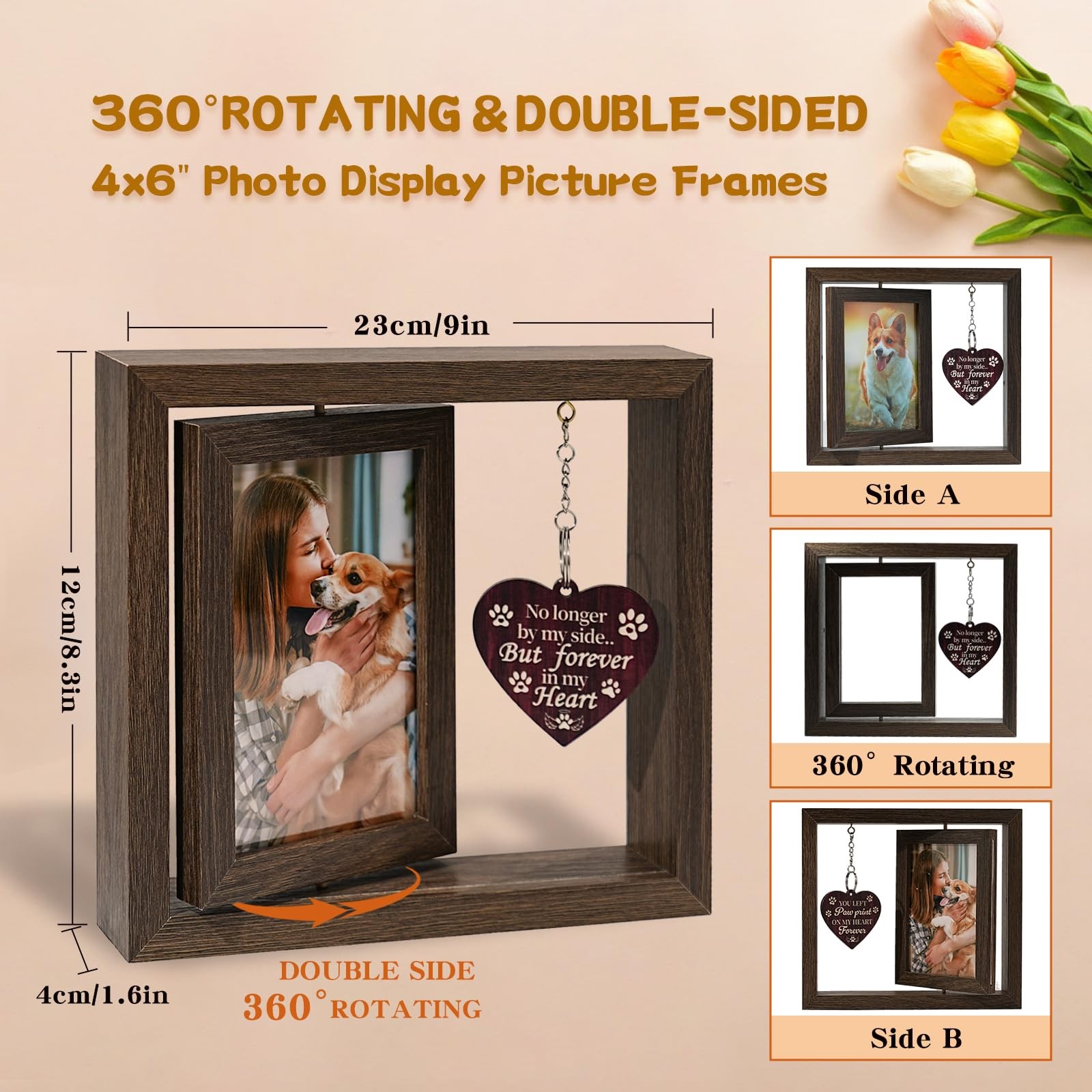 как выглядит Pet Memorial Gifts for Dogs - Loss of Dog Sympathy Gift Rotating Wooden Pictu... фото