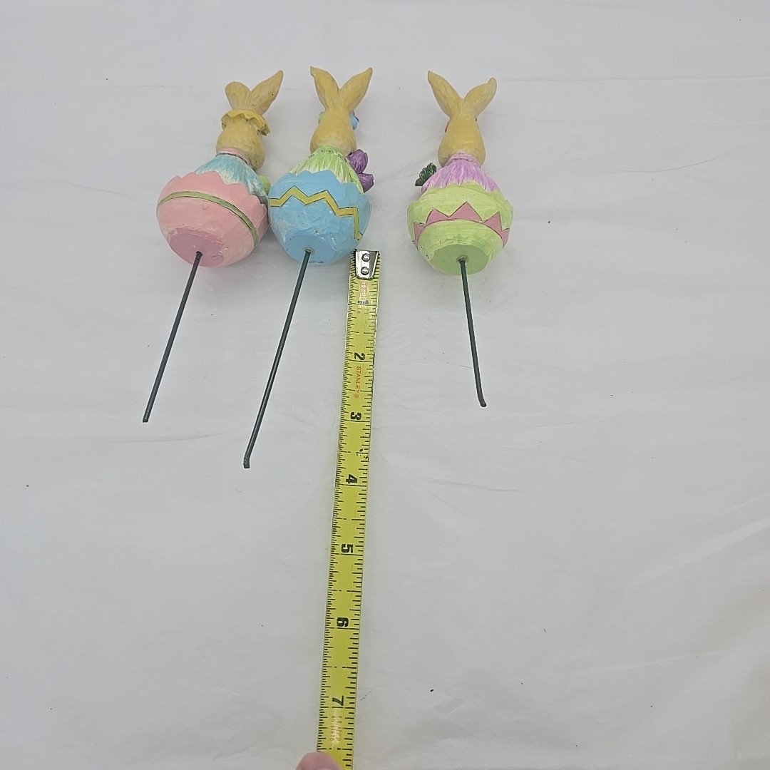 Easter Bunny Stakes Wired Stem x 3 Flower Pot / Bed Spring Decorations Resin x 3
