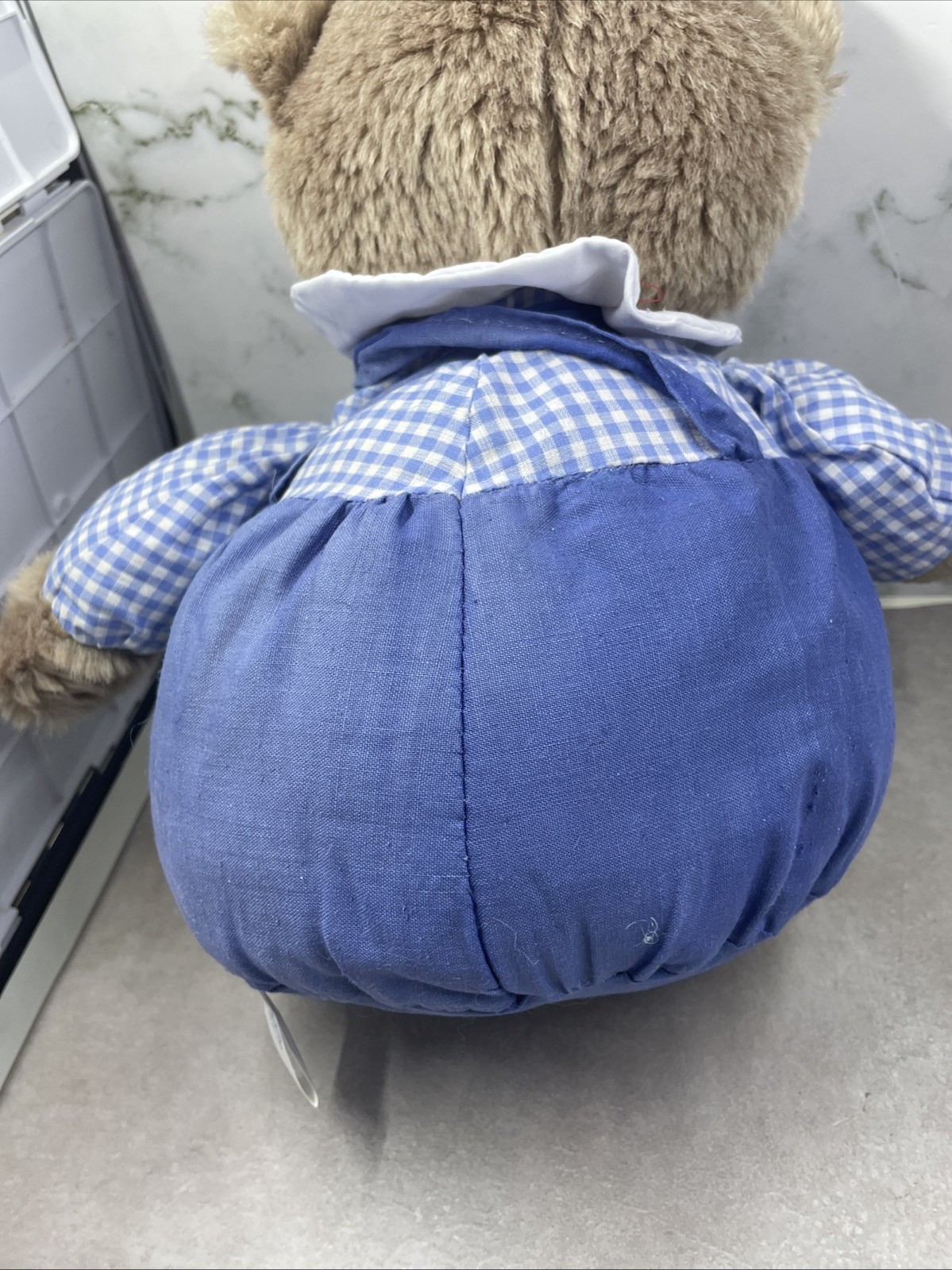 как выглядит Vtg Nanco Bear Plush Teddy Blue Overalls Stuffed Animal Toy 11 Gingham Shirt фото