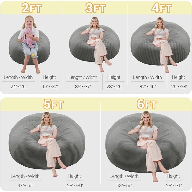 Comfy Bean Bag Chair High-Rebound Foam Removable Washable Cover Adults New