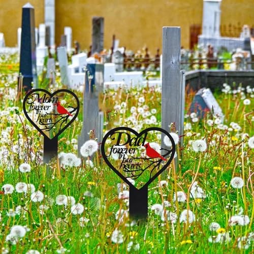 Heart Memorial Plaque Stake Sympathy Grave Marker - Cardinals Garden Dad-A