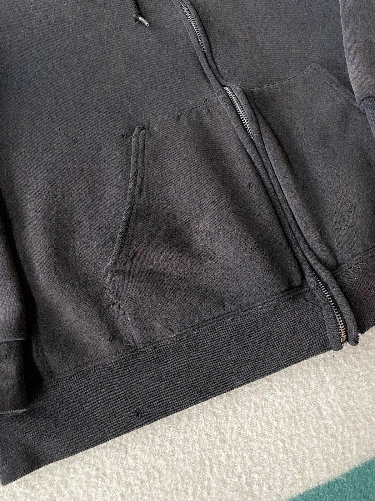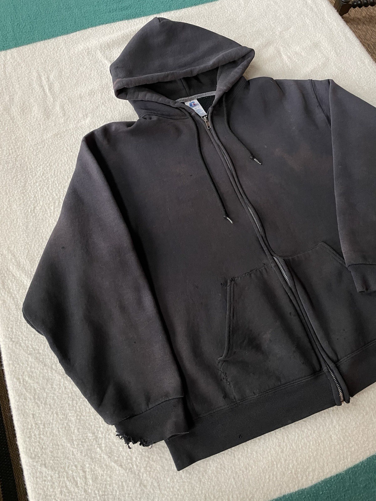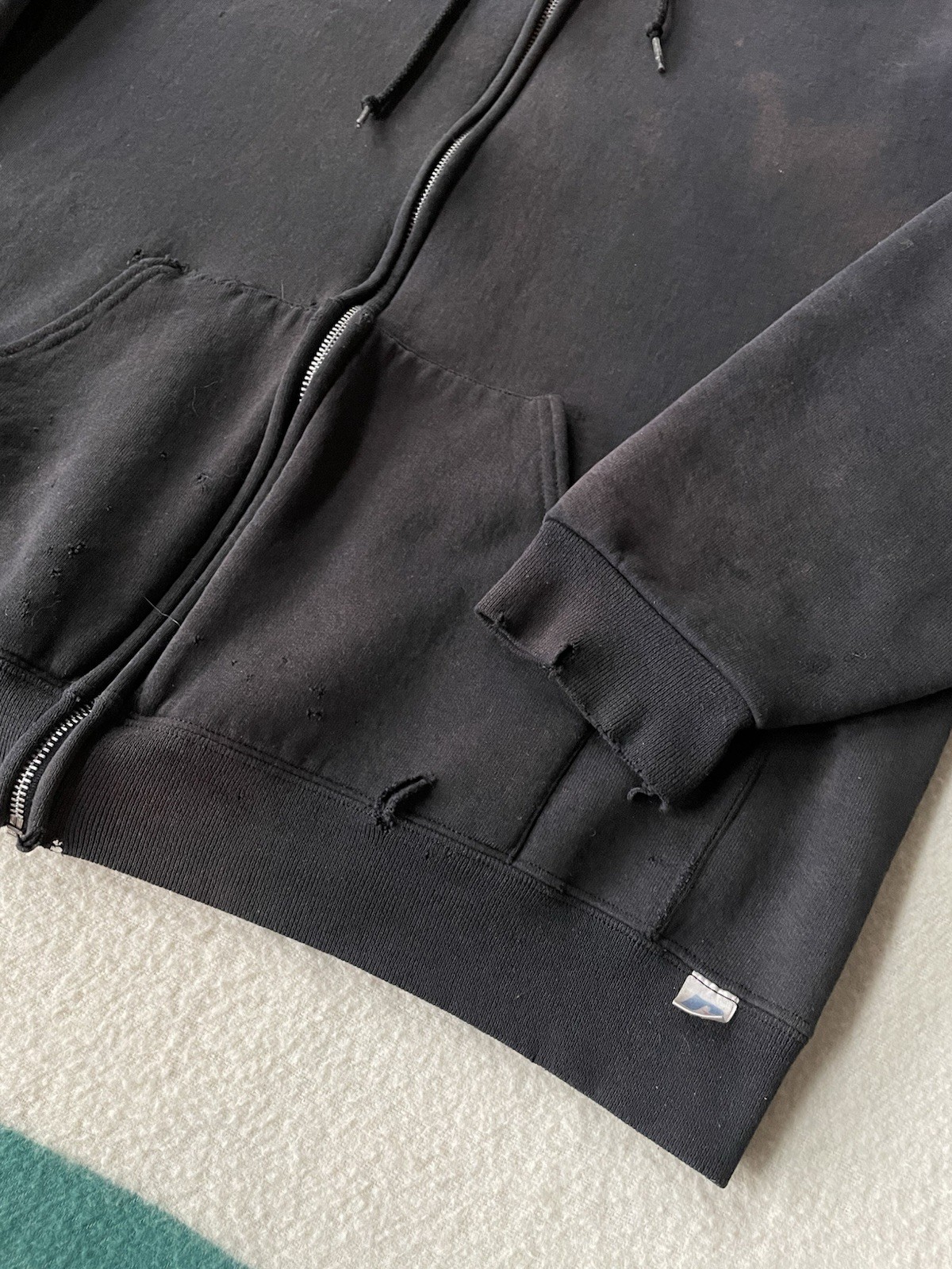 Vintage Y2K Russell Athletic Full Zip Hoodie Sweatshirt Black VTG Faded Distress
