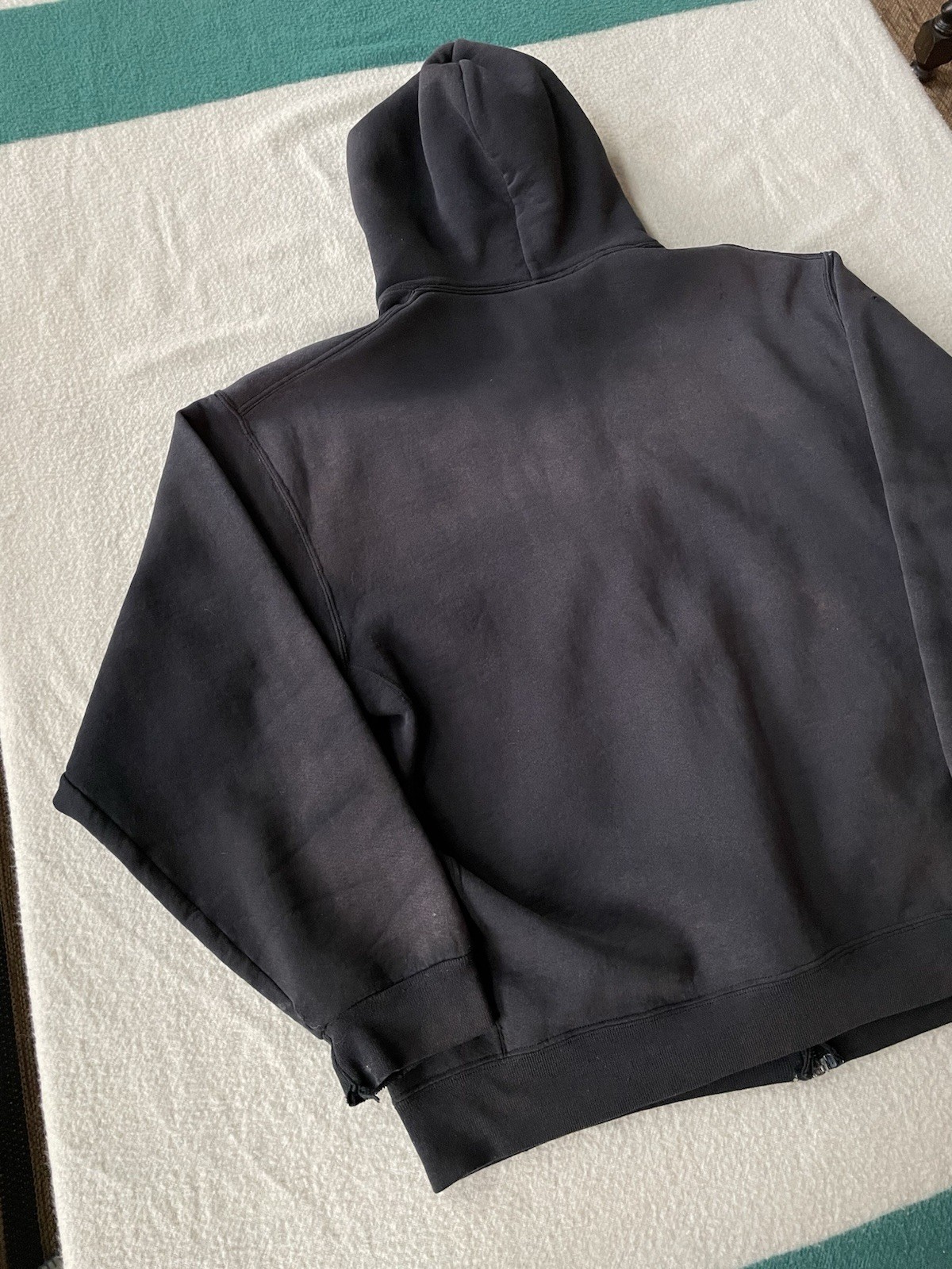 как выглядит Vintage Y2K Russell Athletic Full Zip Hoodie Sweatshirt Black VTG Faded Distress фото