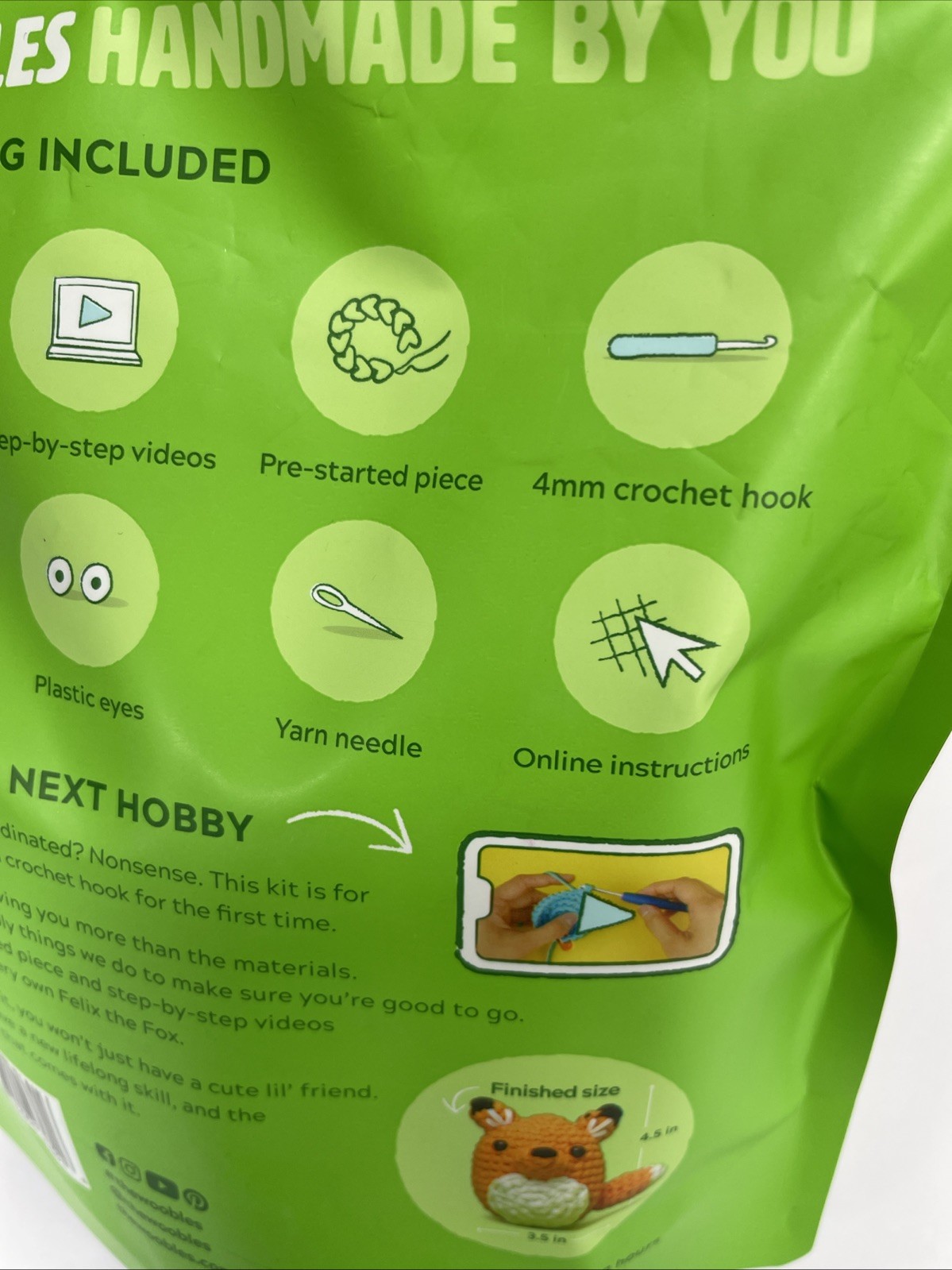The Woobles For Beginners Felix Fox Green Bag Crochet Kit New