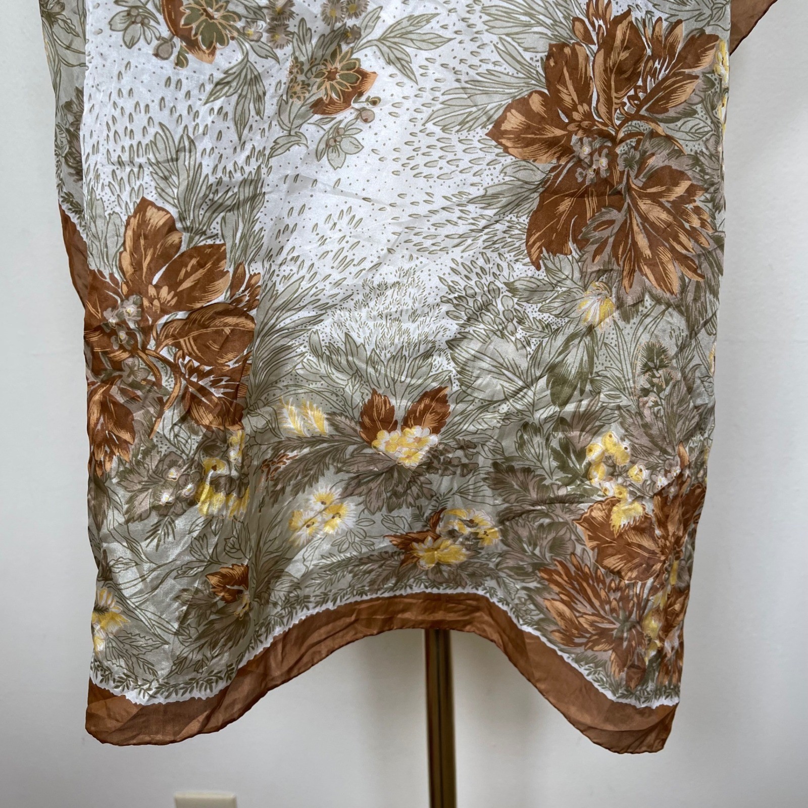 Vintage Silk Hand Rolled Printed Floral Scarf Brown Green Fall Autumn Boho