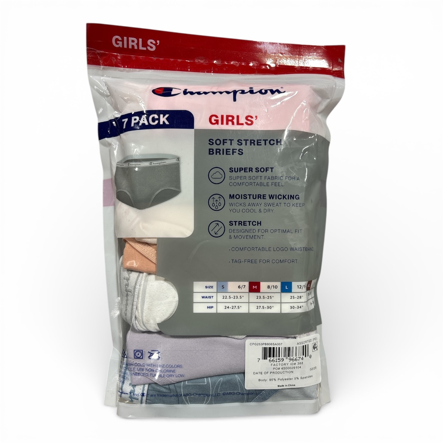 Champion Youth Girl's Super Soft Comfort Fit Stretch Briefs, 7 Pack