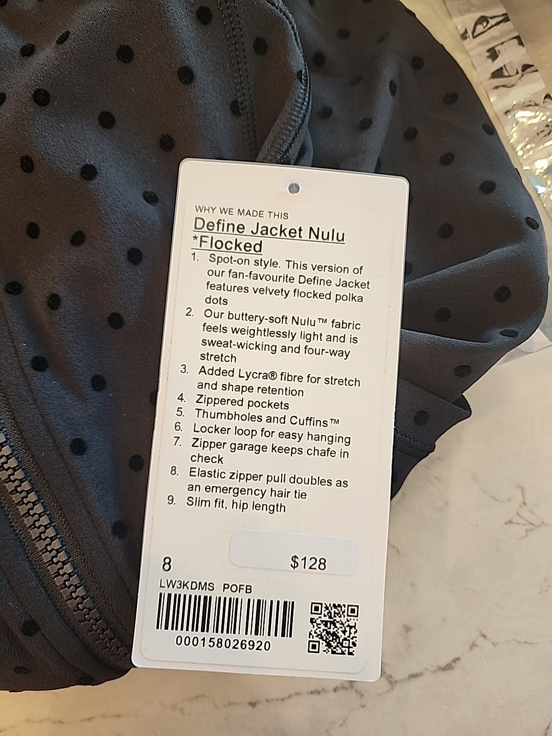 как выглядит NWT Lululemon Define Nulu Jacket Coat Polka Flock Black Flocked Dot Size 8 фото