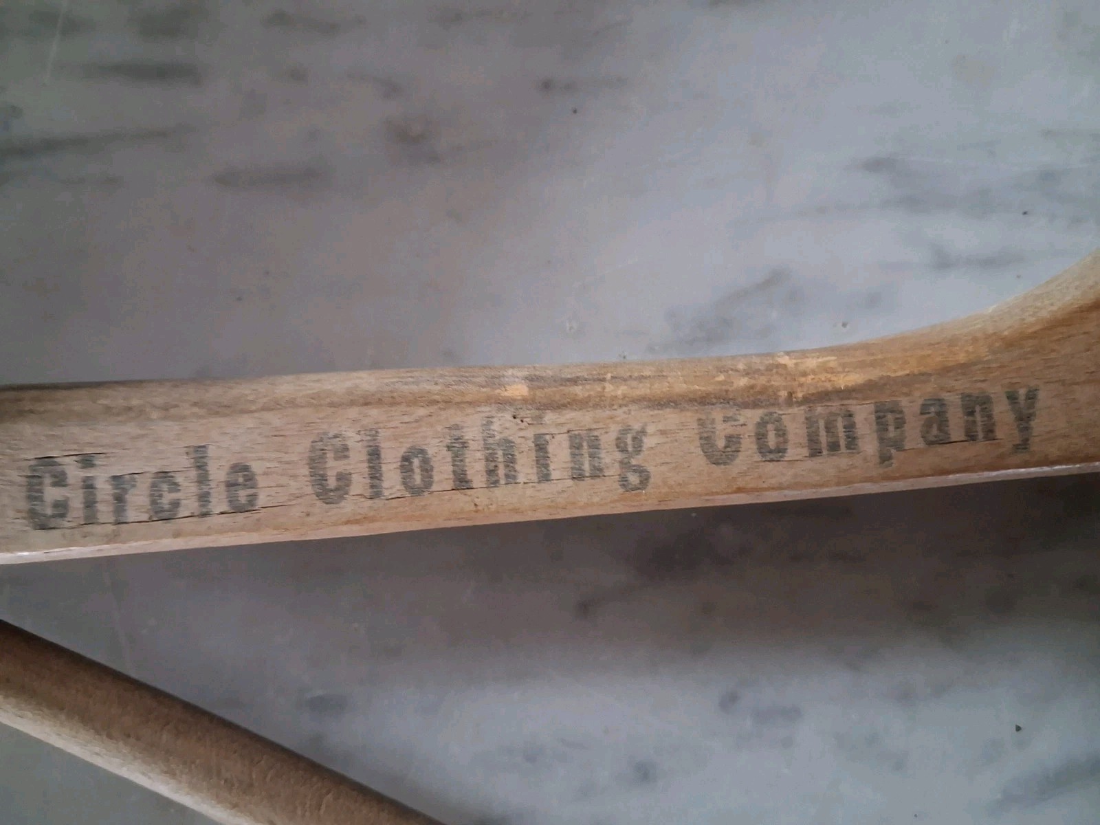 как выглядит Lot of 2 Vintage Wooden Hangers Advertising Clothing Store Cleaners фото