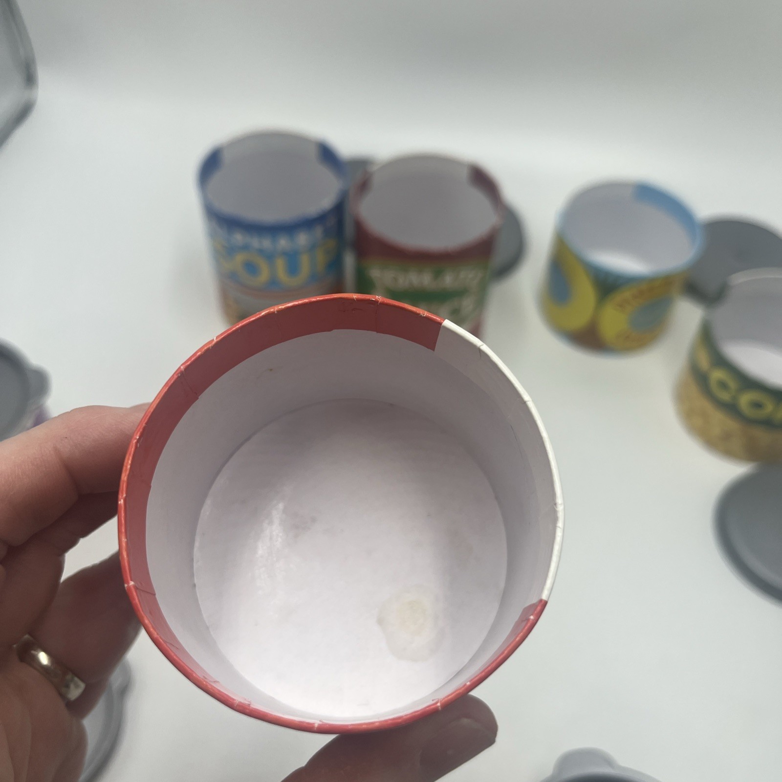 как выглядит Melissa Doug Lets Play House Play Kitchen Lot Food Cans W/removable Lids READ фото