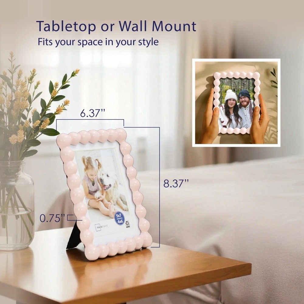 как выглядит Pink Beaded 5x7 Photo Frame with 4x6 Mat Wall Mount or Tabletop Display фото