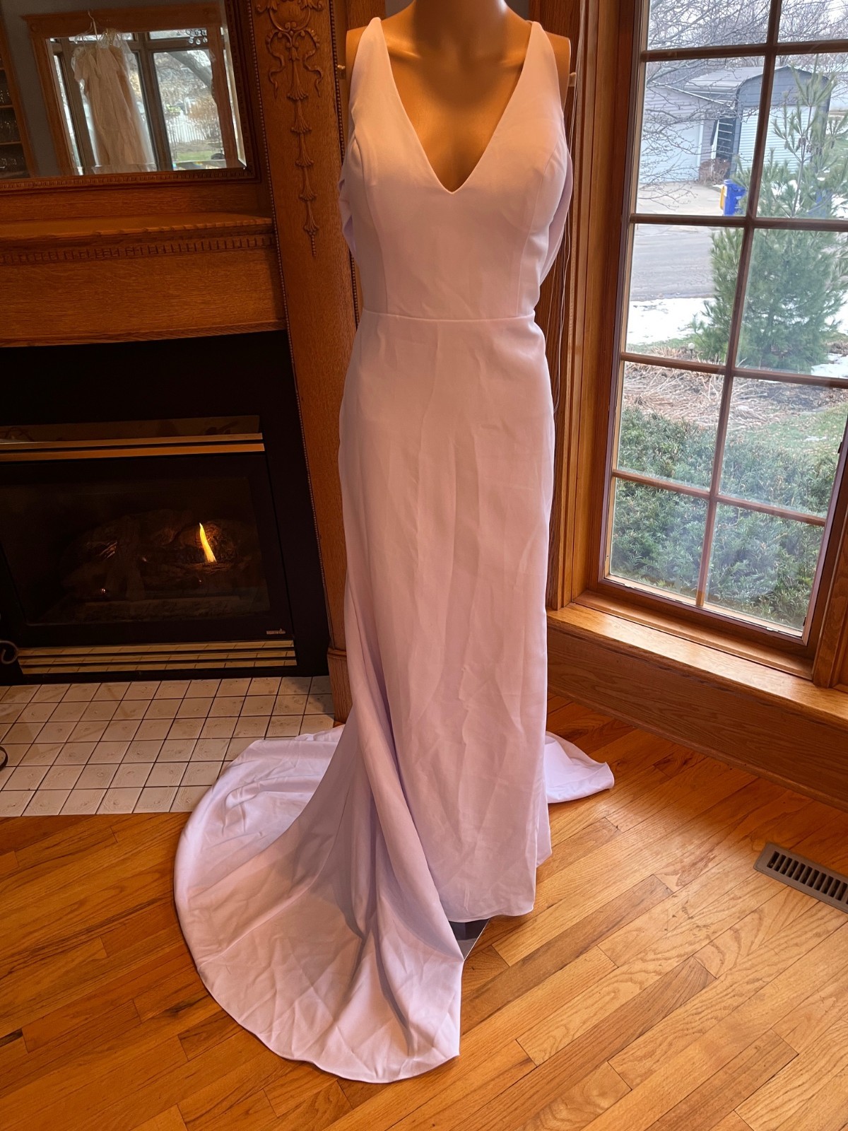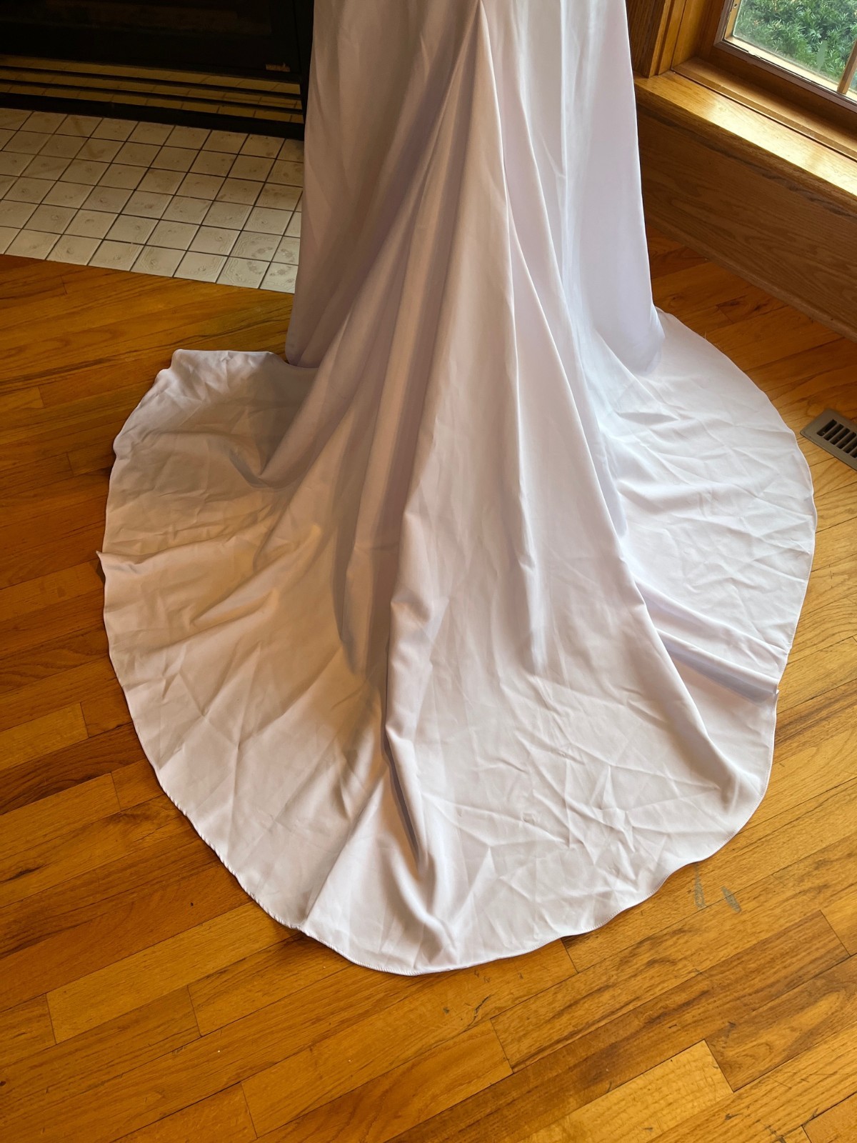 как выглядит White Sleeveless Fit Flare Flowing Matte Satin Wedding Gown Bridal Dress Size 10 фото