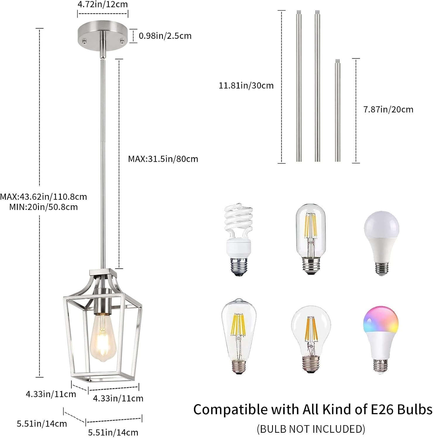 Brushed Nickel Lantern Pendant Light Fixture Pendant Lights for Kitchen Island