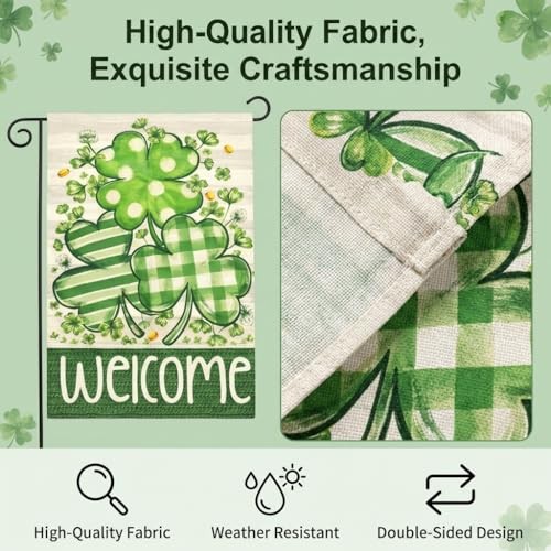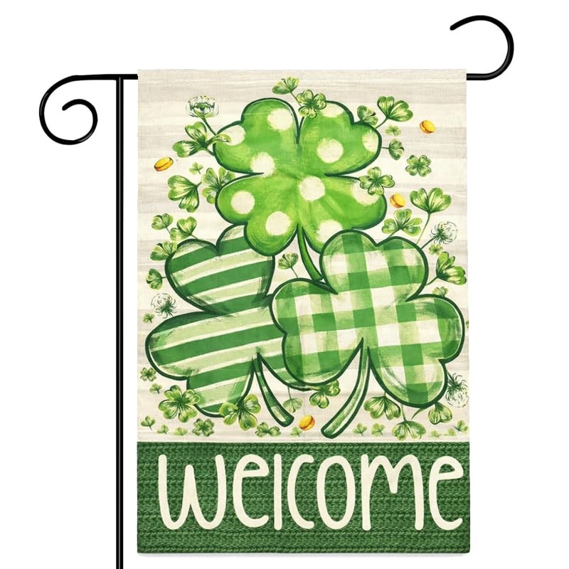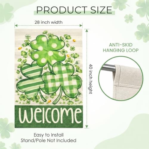 St Patricks Garden Flag, 28x40 Inch St Patricks Flag, Welcome Yard Flag Green