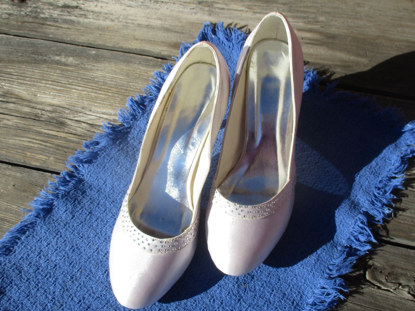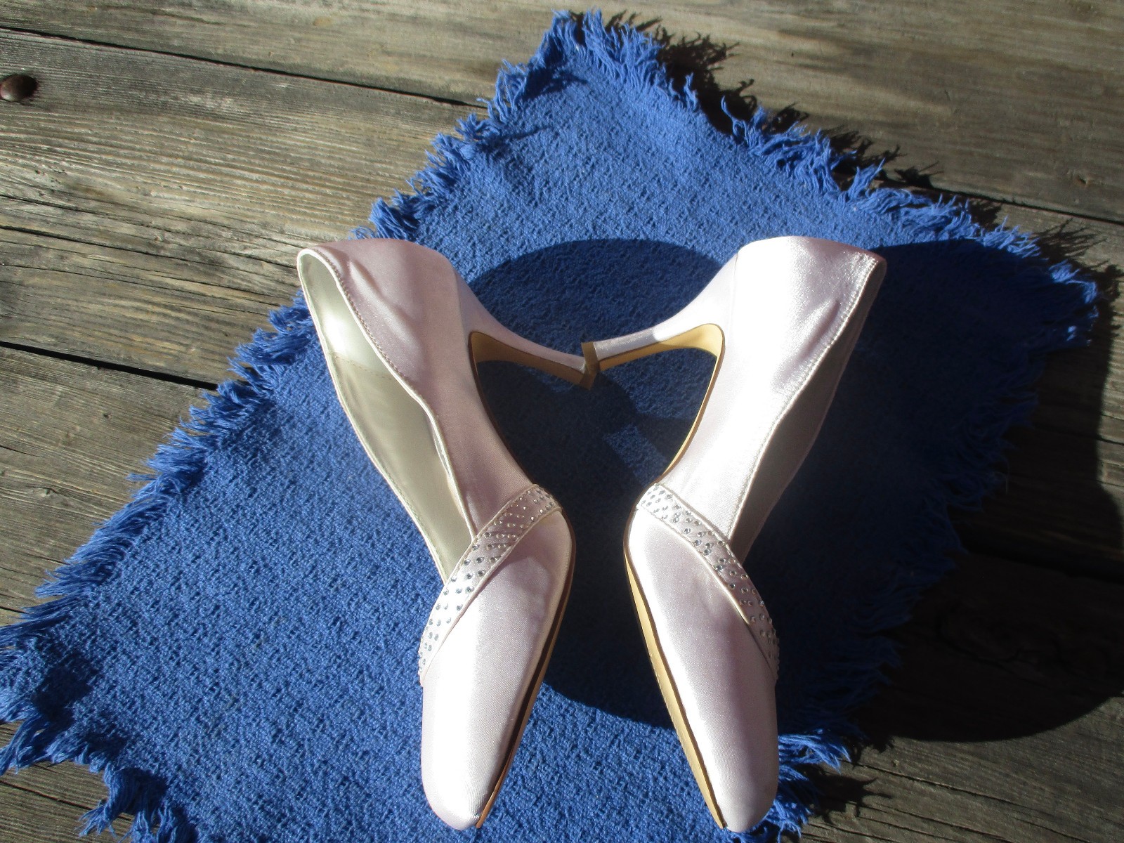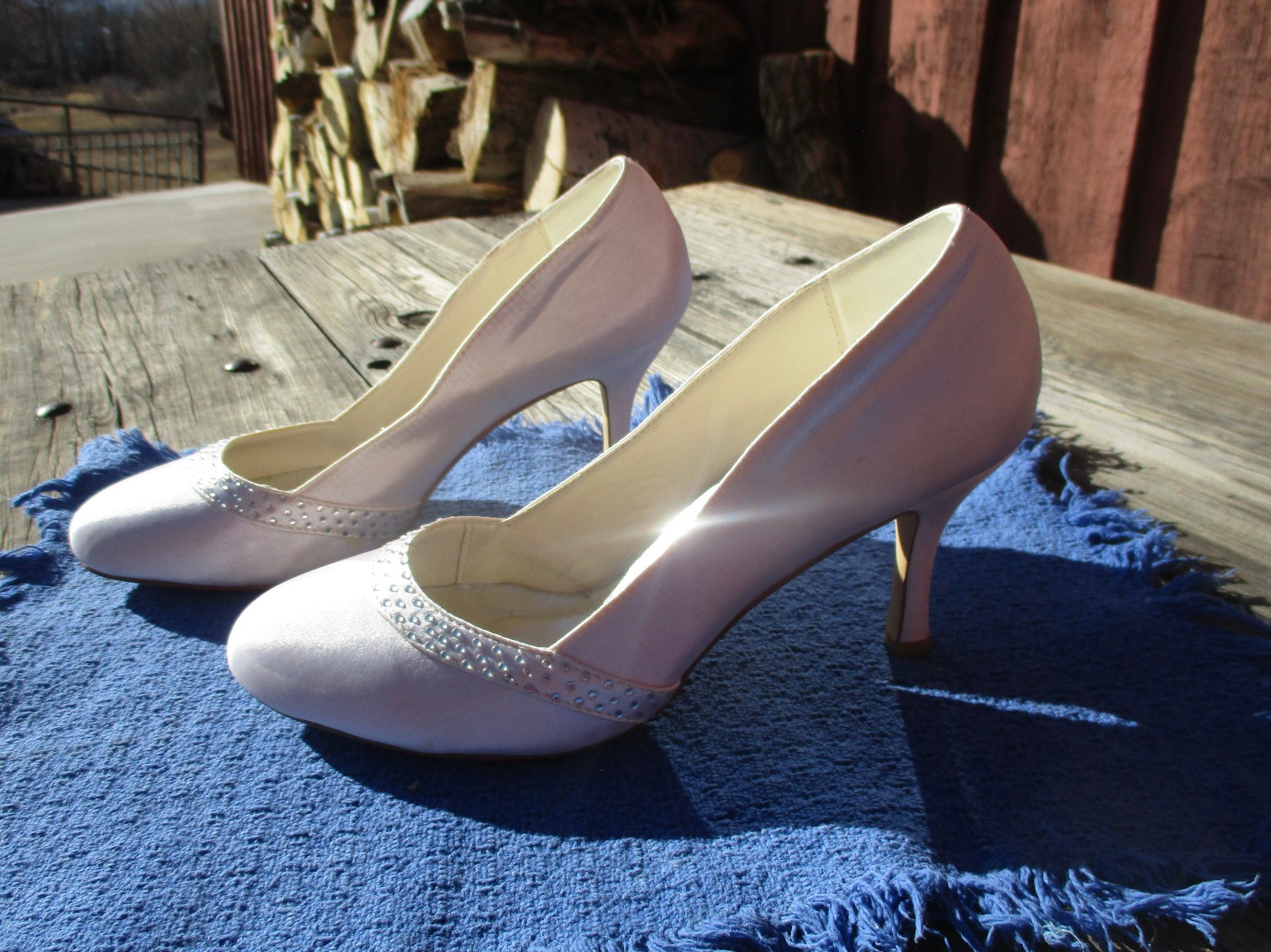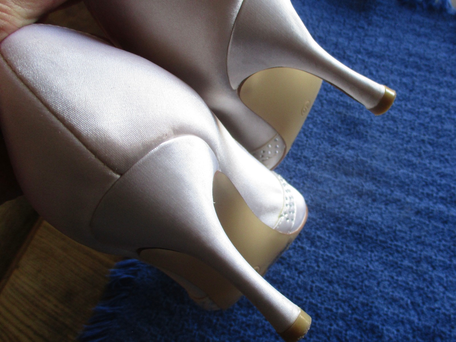 как выглядит White Satin Heels with Rhinestone Embellishment High Heel Bridal Shoe фото