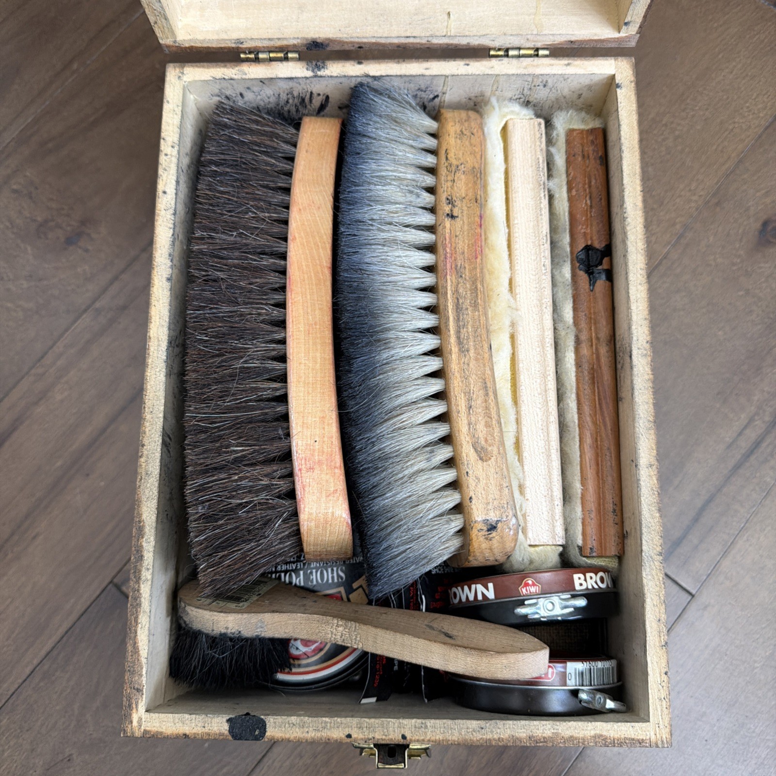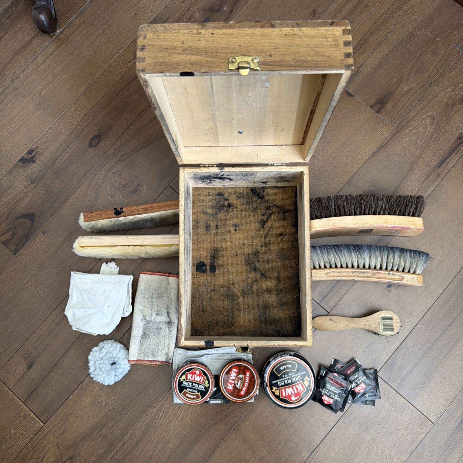 как выглядит Shoe Shine Storage Box And Accessories- Vintage фото