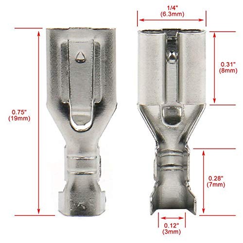 100PCS 6.3mm Female Spade Crimp Terminals Non-Insulated Quick Splice Connectors