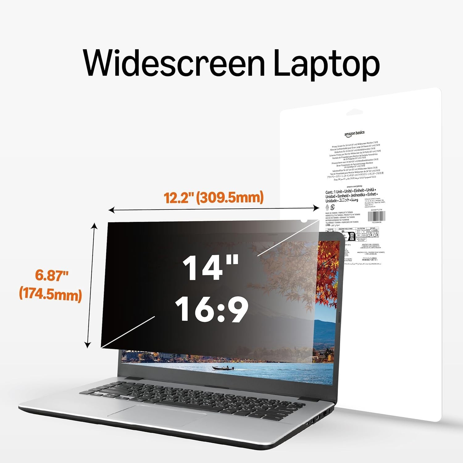 Eye-Caring 14 Privacy Filter for Laptops - Anti-Spy, High Brightness, Easy Fit
