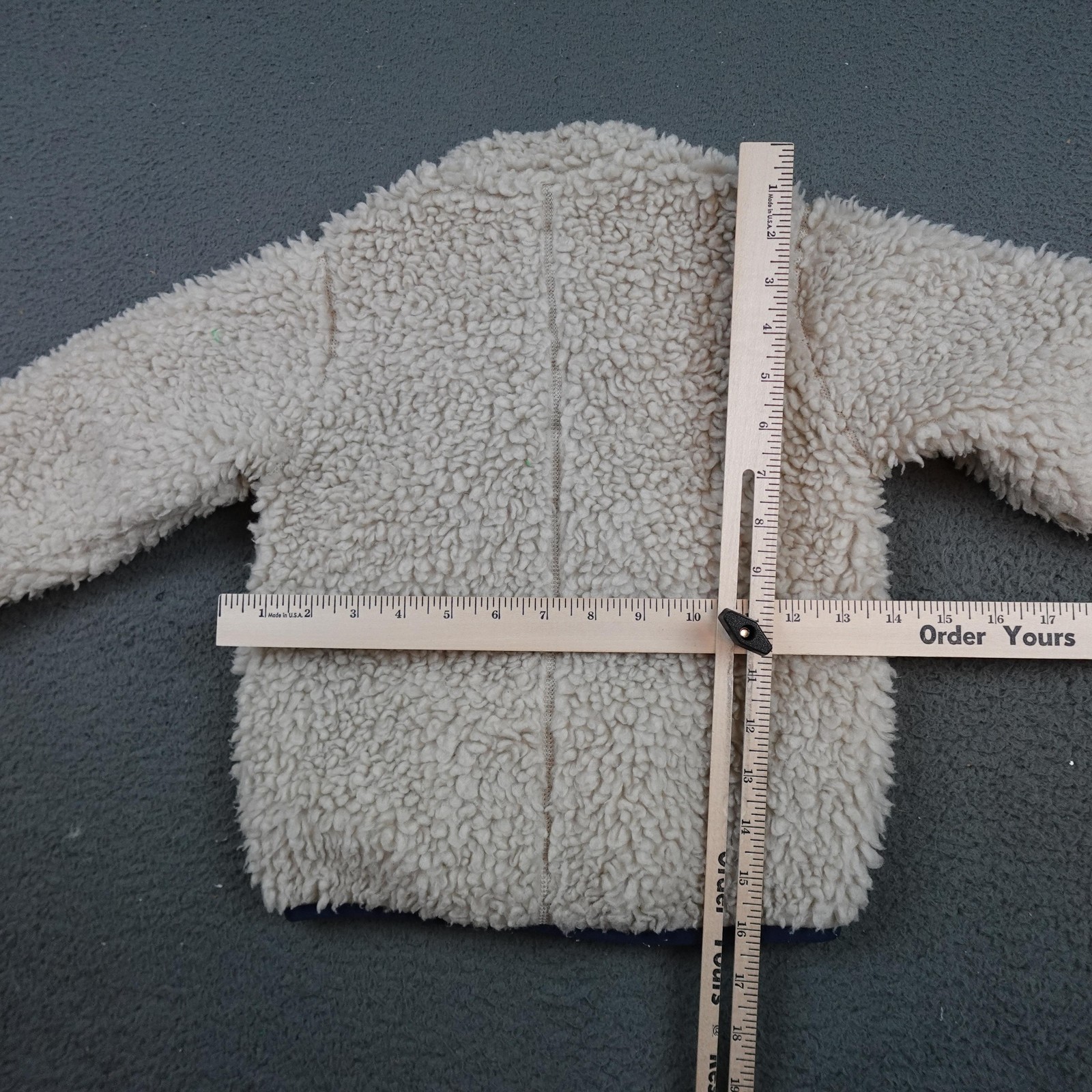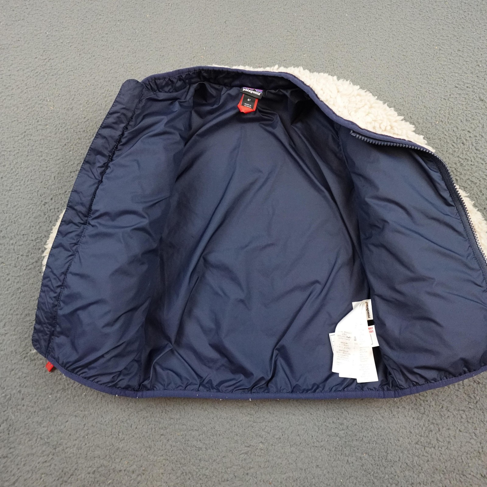 как выглядит Patagonia Retro-X Fleece Jacket Kids 4T Oatmeal Sherpa Full Zip Lined Navy Trim фото