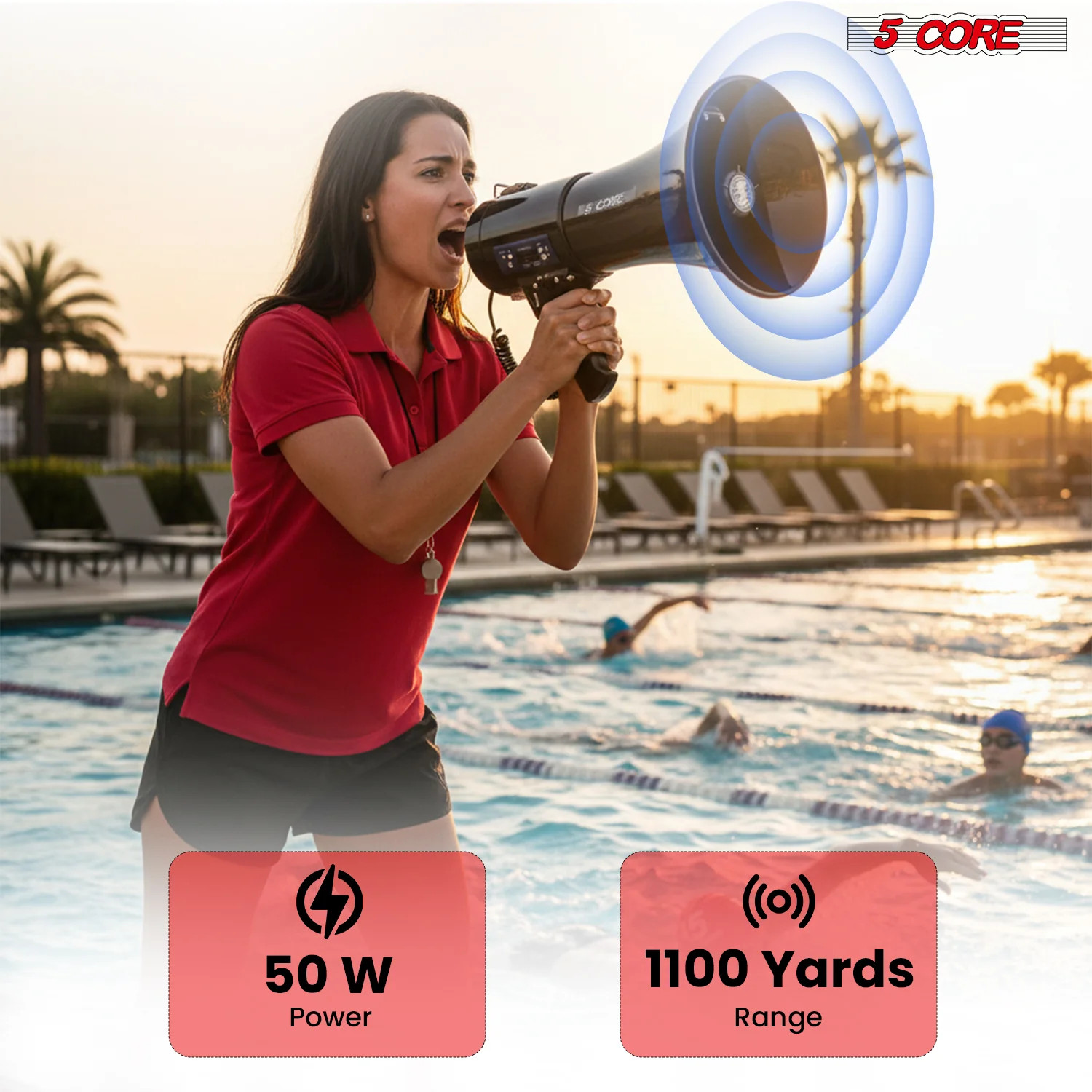 5 Core Megaphone 50W Bluetooth Rechargeable Portable Bullhorn 1100 Yards w Siren