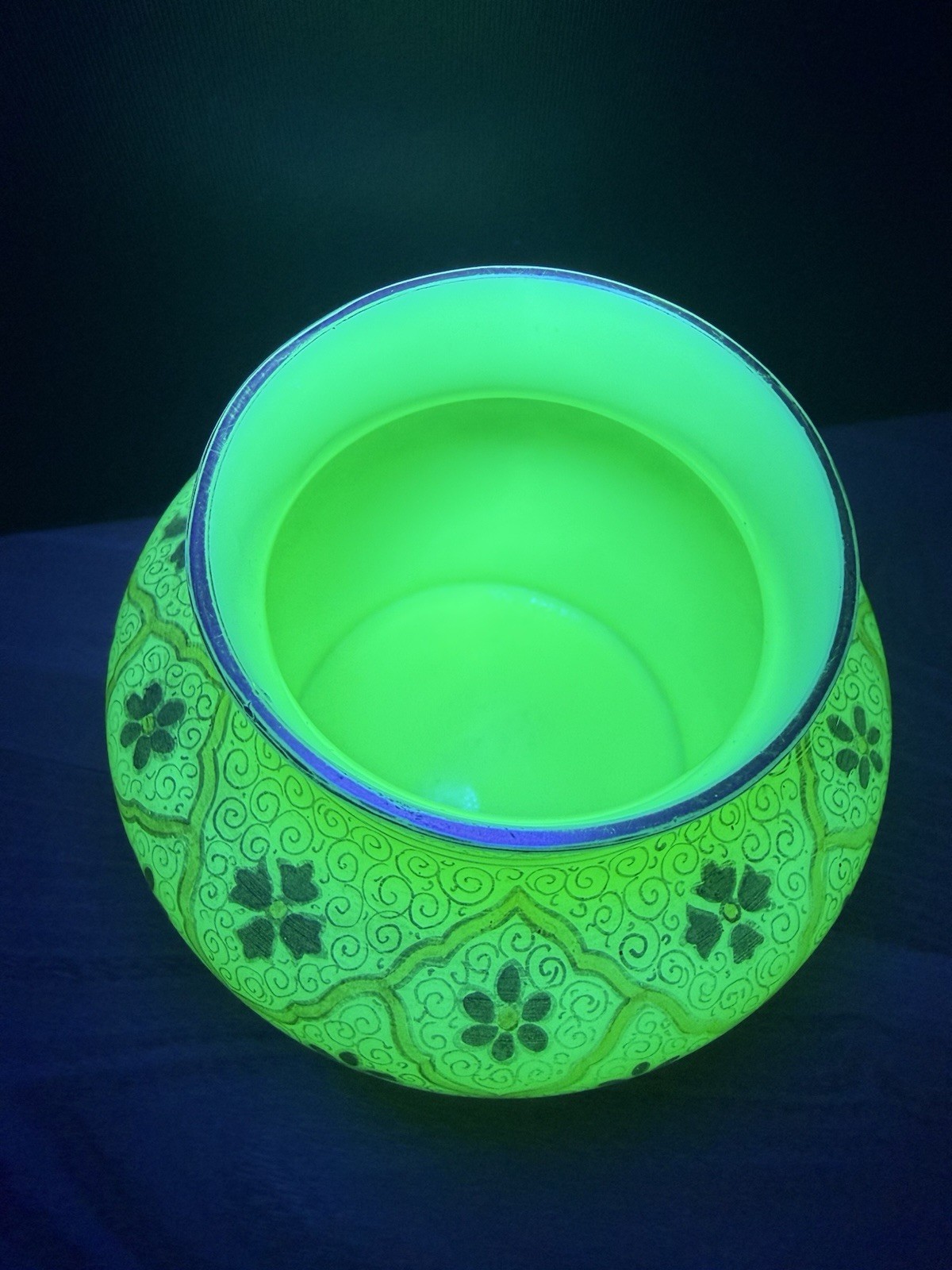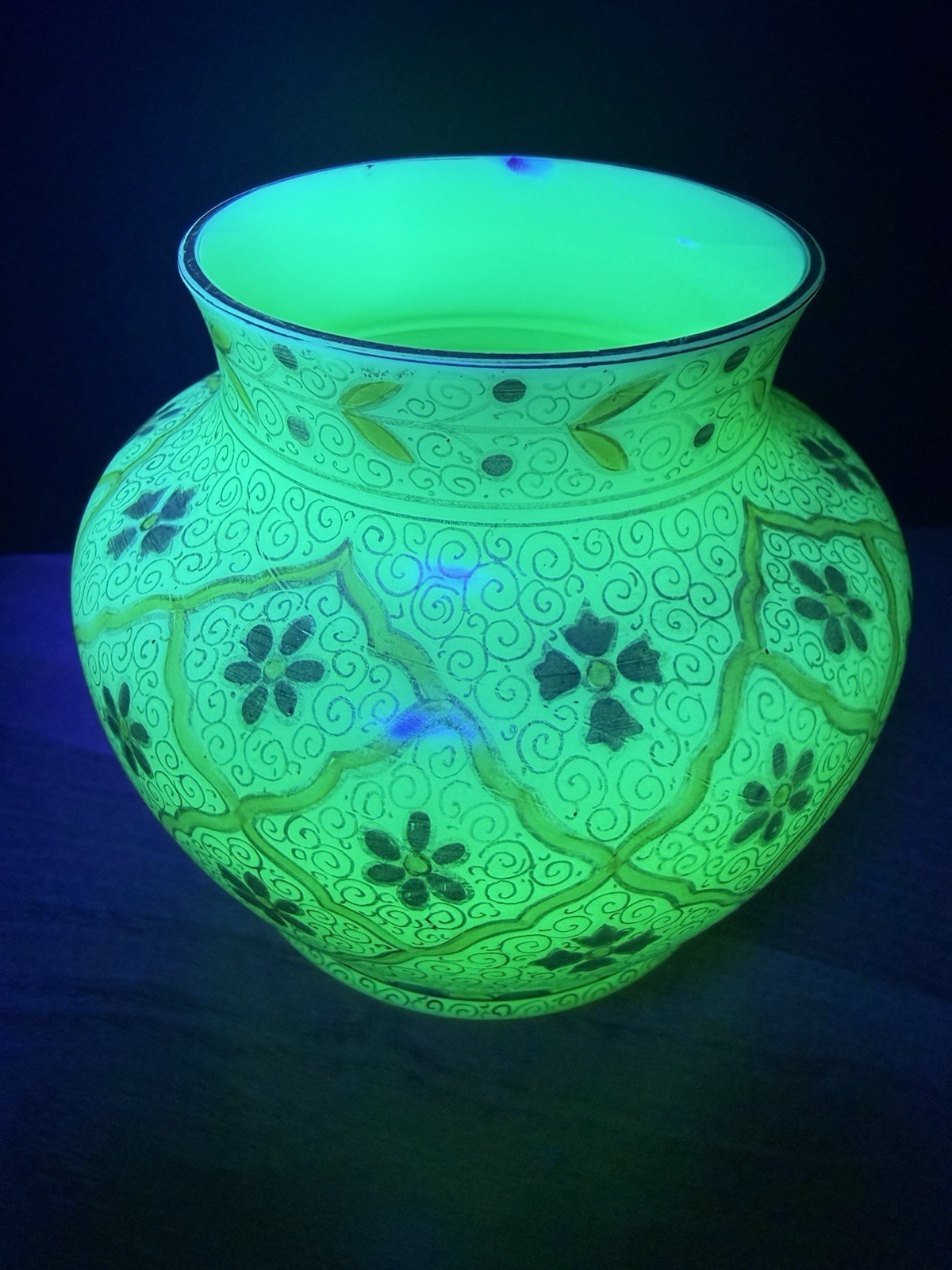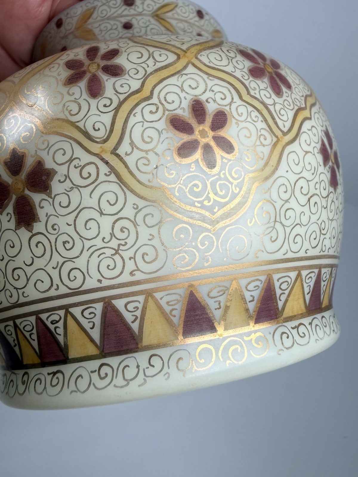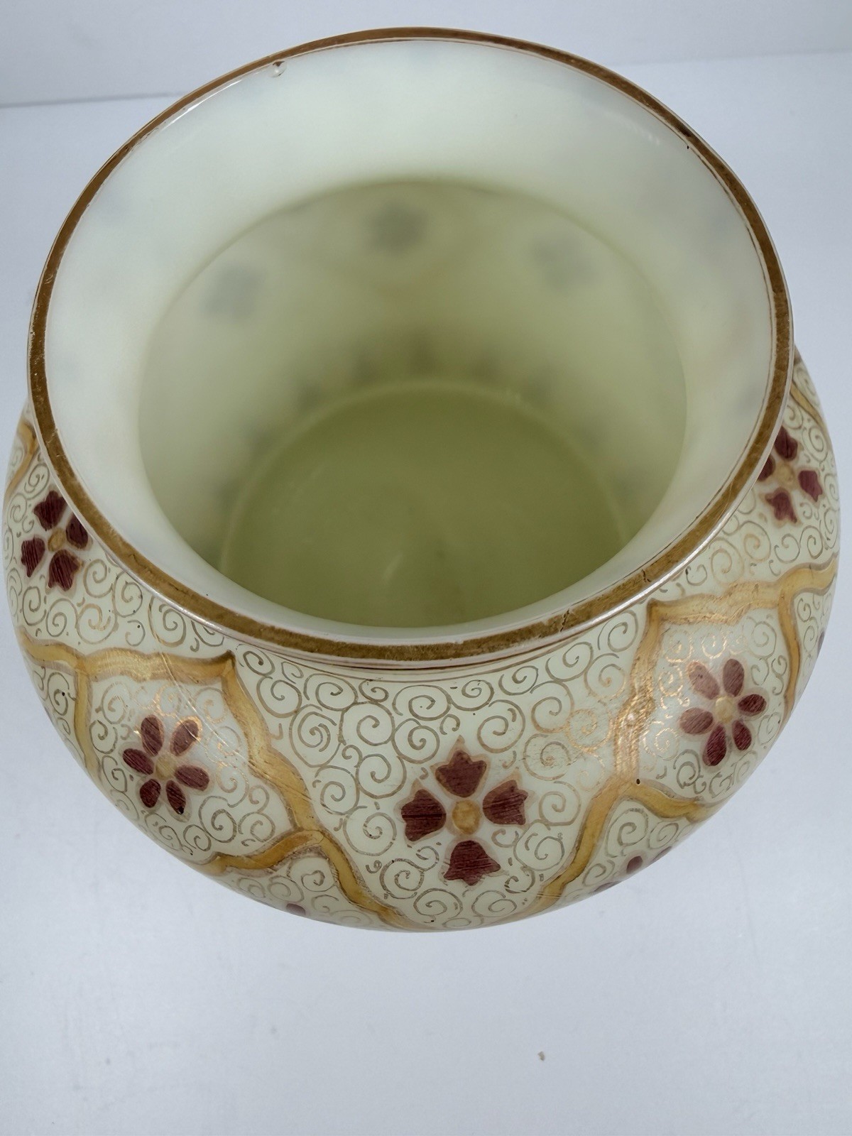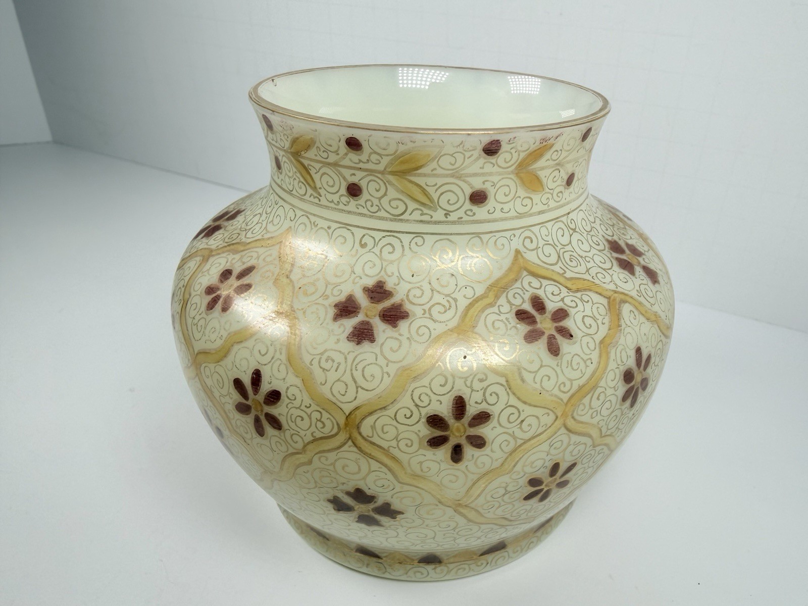 как выглядит Antique Custard Uranium Glass Hand Painted Jar, Vase фото