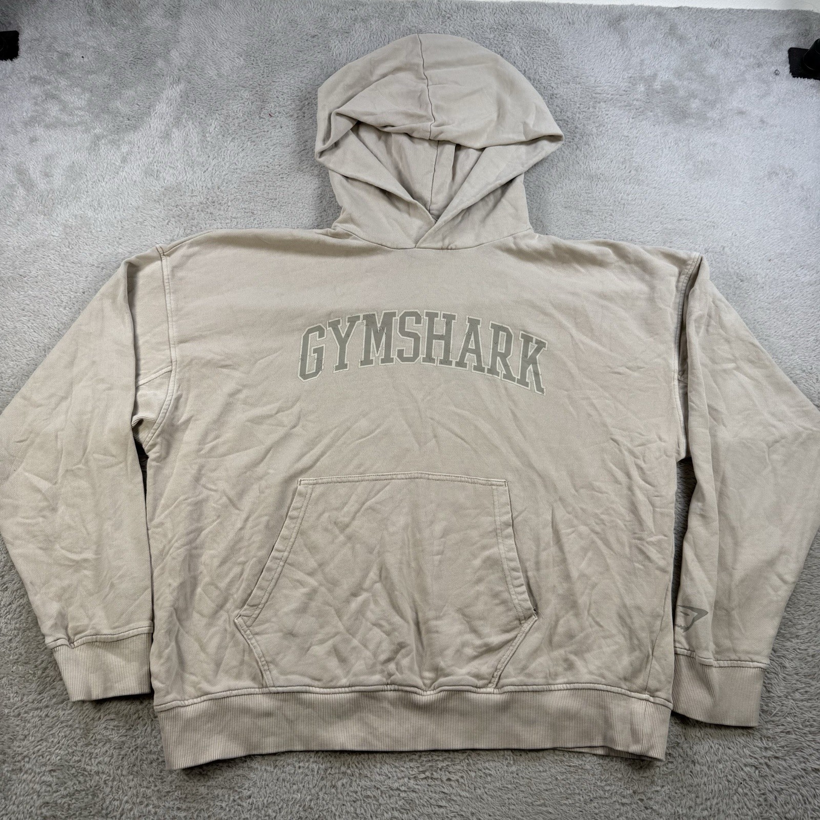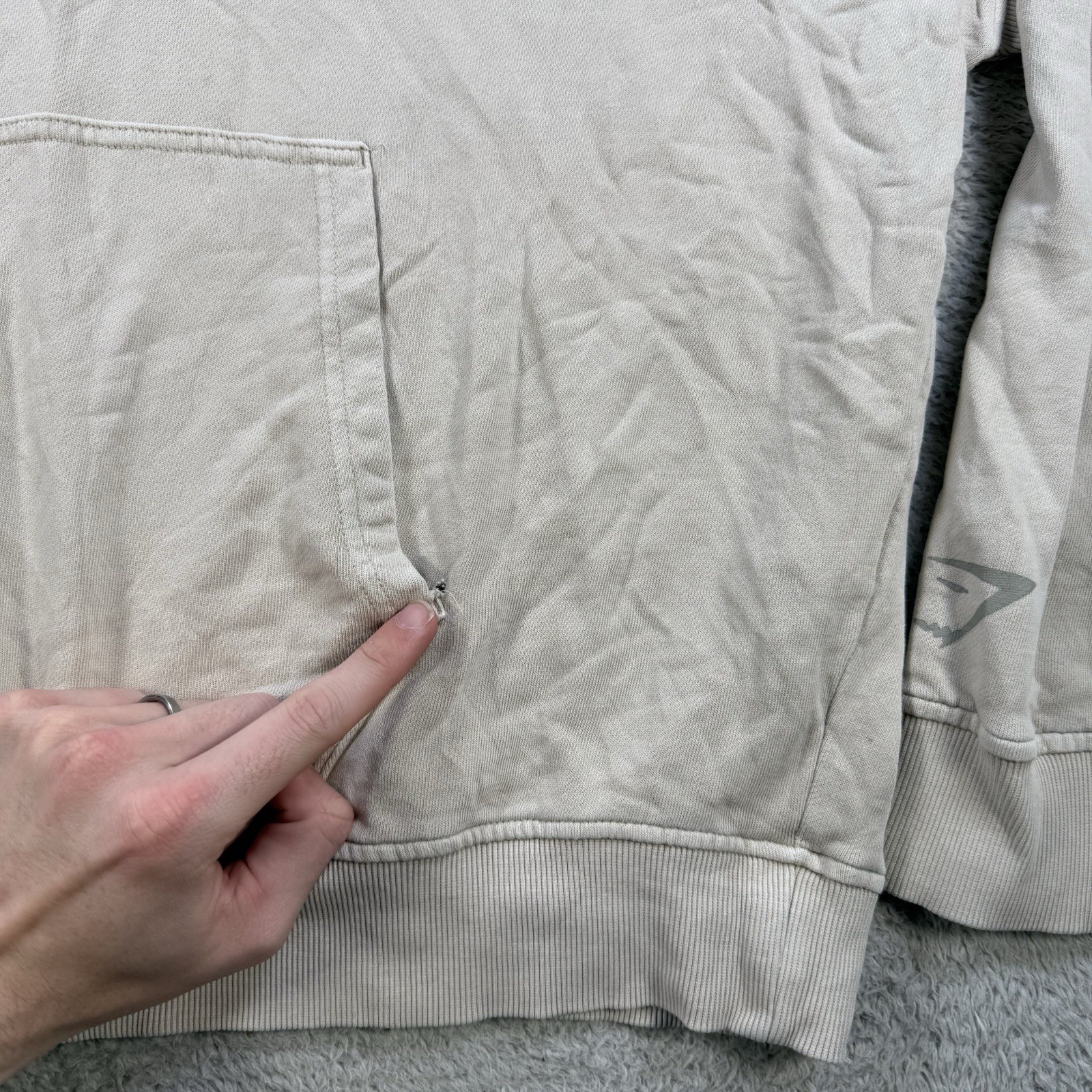 Gymshark Hoodie Mens Medium Cream Fleece Gym Logo Activewear Sweatshirt Workout