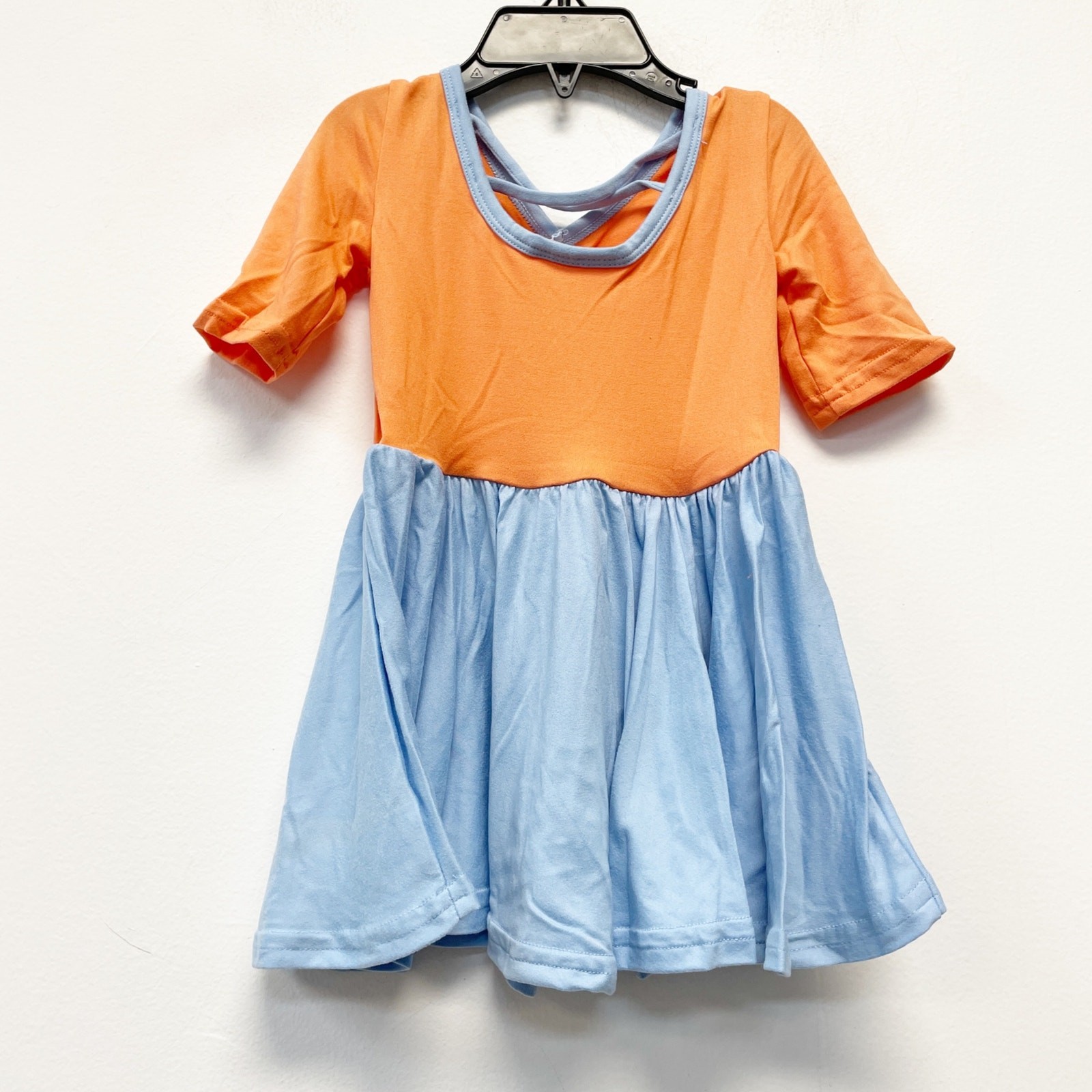Dot Dot Smile Girls Orange and Blue Ballerina Short Sleeve Dress Size 12-24m