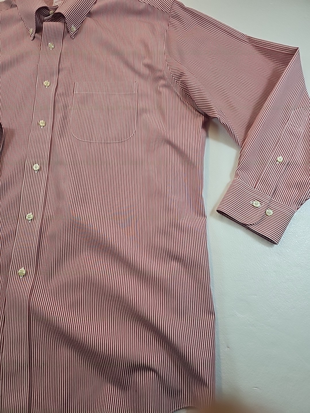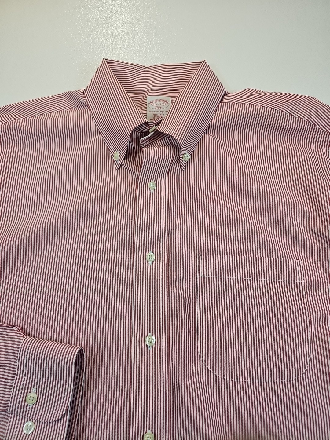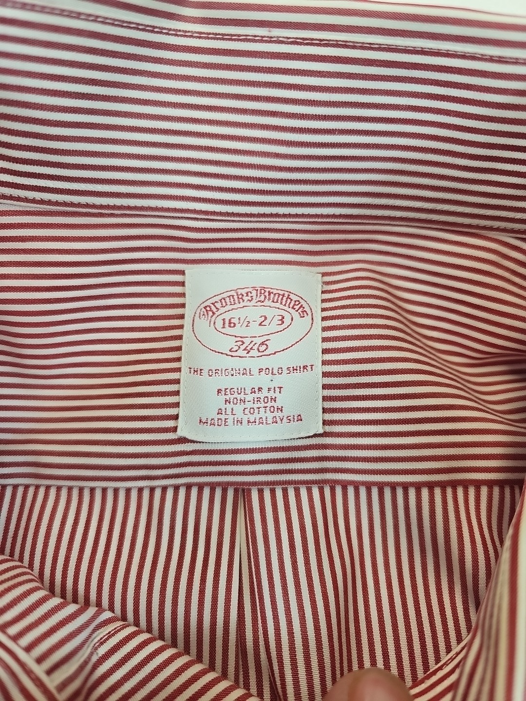 как выглядит Brooks Brothers 346 The Original Polo Shirt 16 1/2- 2/3 All Cotton Red Stripe фото