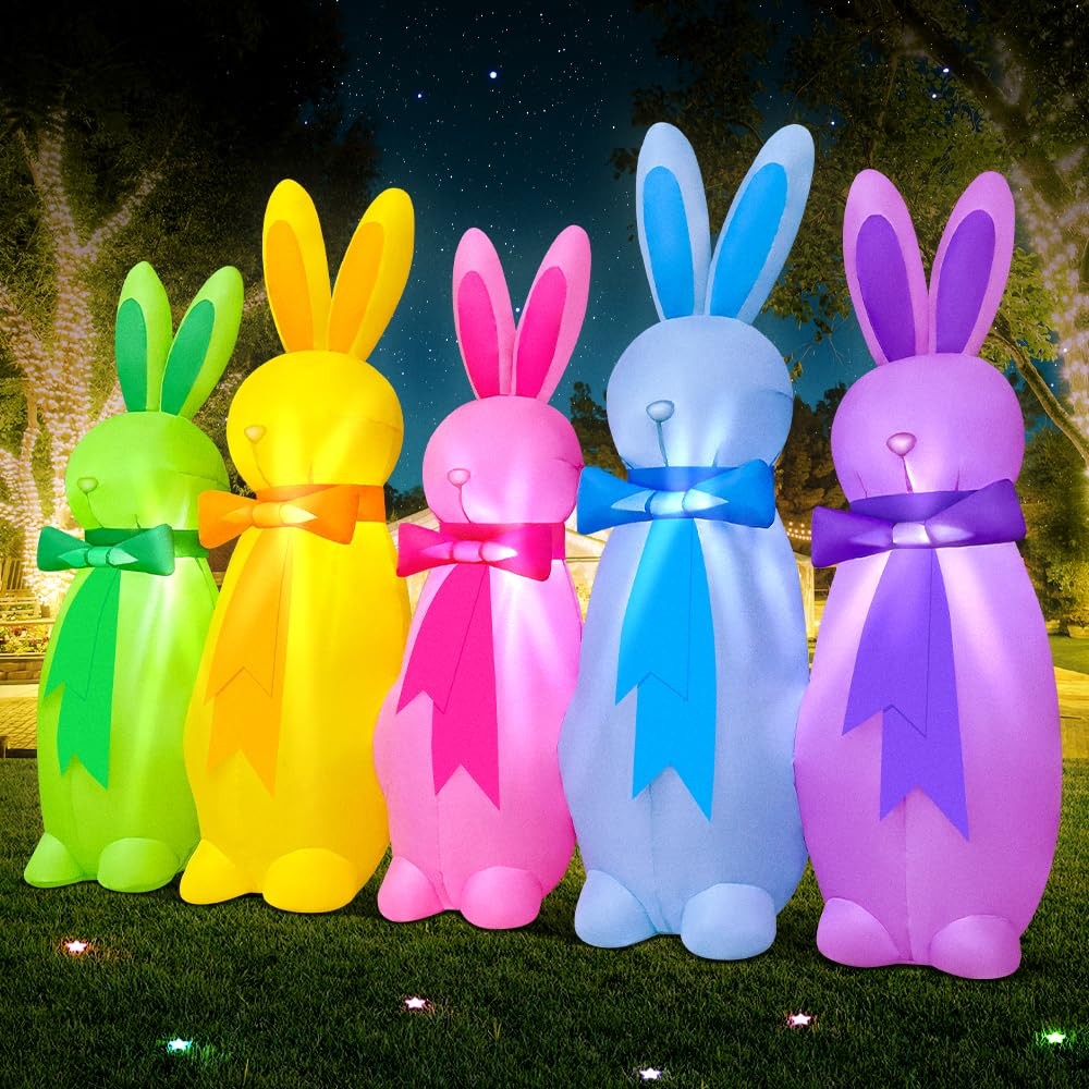 как выглядит 6FT Easter Inflatables Outdoor Decoration Five Colorful Bunny, Built in Light... фото