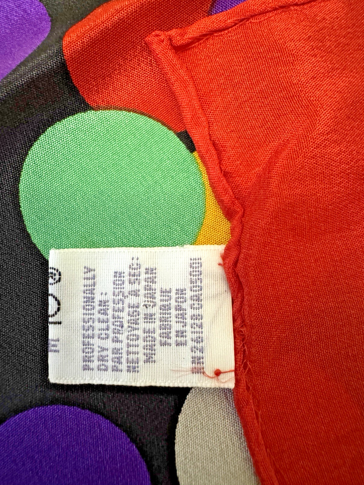 VTG ECHO 10 100 Silk Scarf, Red Brdr, black background, multi-colored polkadots