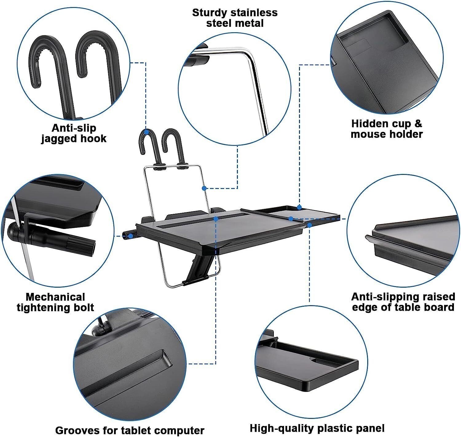 Portable Car Steering Wheel Seat Tray Back Seat Laptop Desk Food Tray Stand