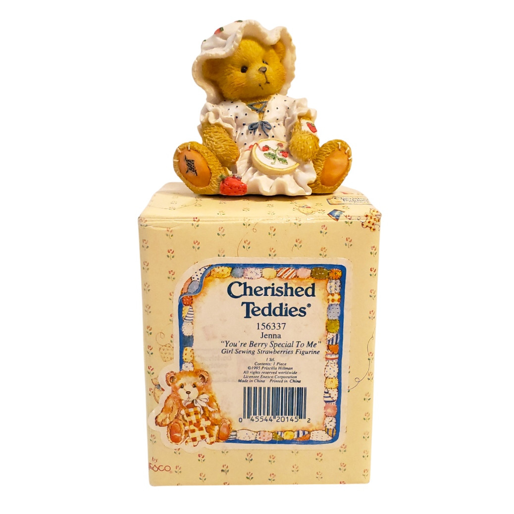 Cherished Teddies Jenna 1995 Enesco 156337 Bear Sewing Strawberries with Box