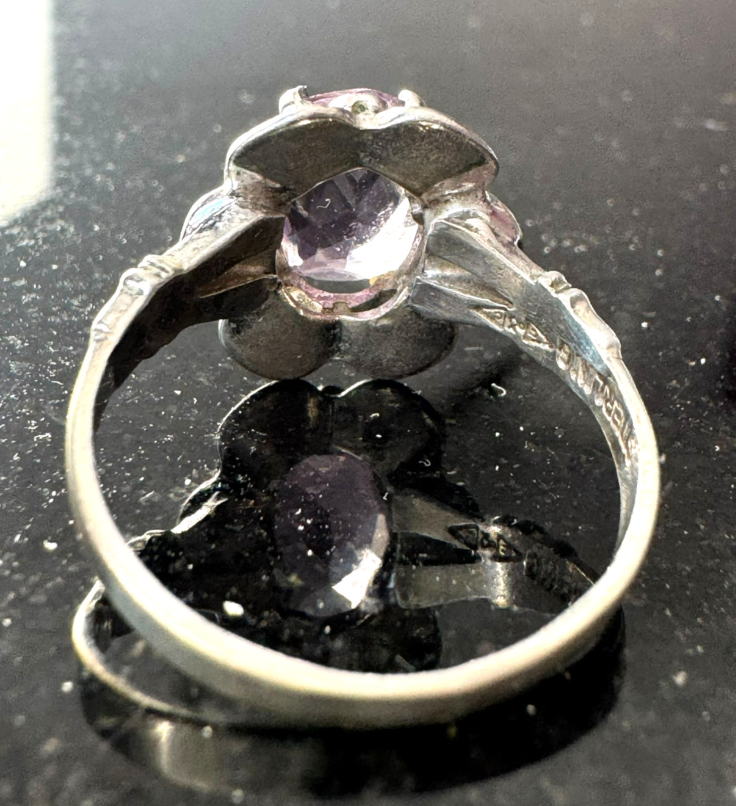 как выглядит Vintage 925 Sterling Silver Amethyst Ring Statement Design Size 6.75 фото